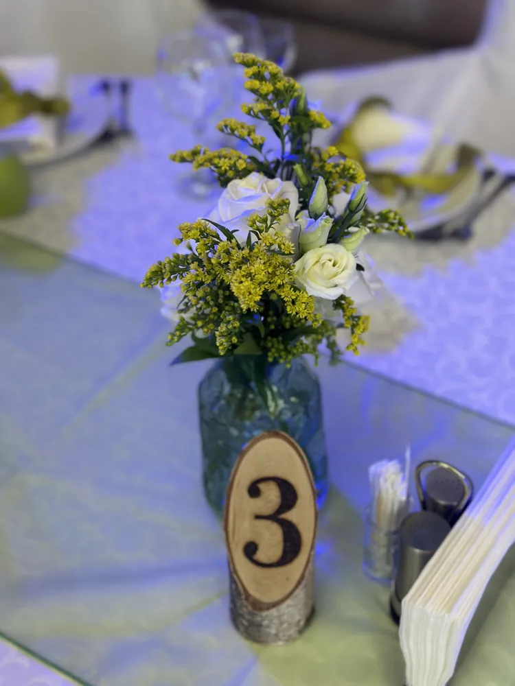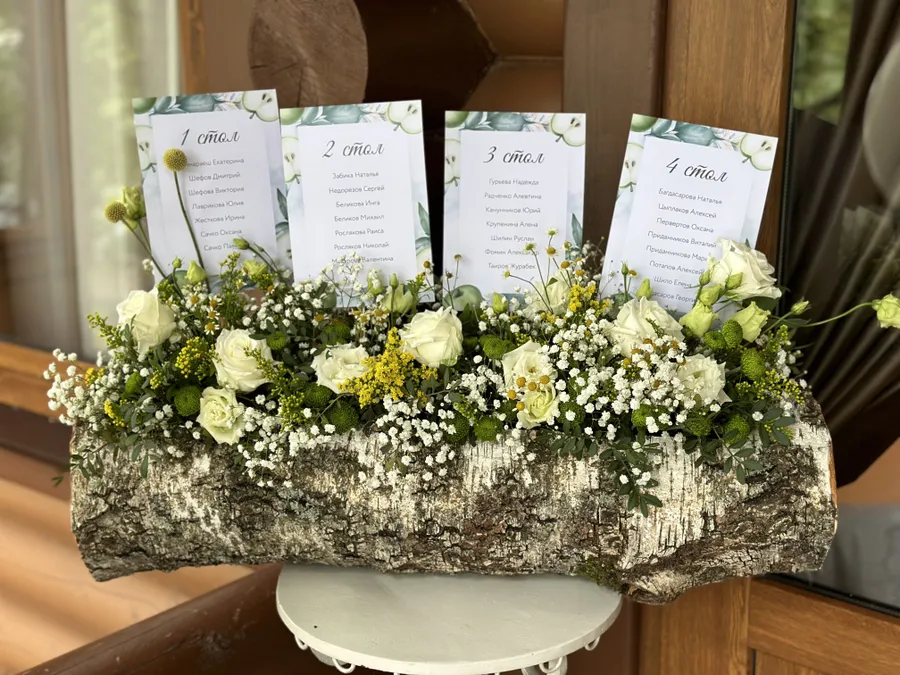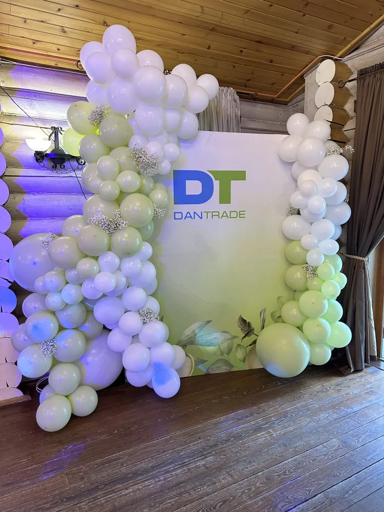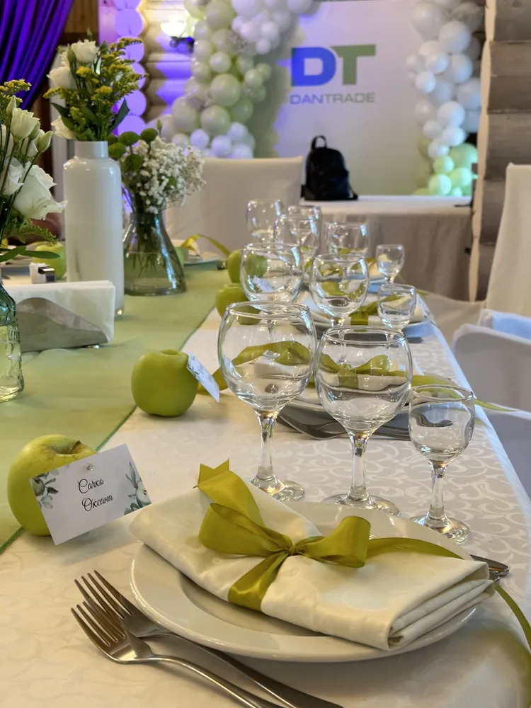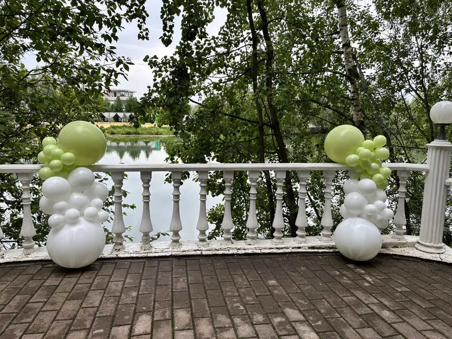 Оформление корпоратива в зелёно-белых оттенках летом