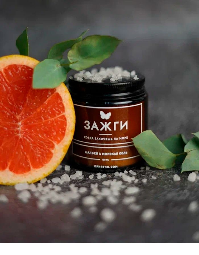 ЗАЖГИ свечу в стекле из 100% соевого воска с ароматом «Шалфей&Морская соль». Шалфей и морская соль - это не просто название, это настоящая ароматическая симфония, которая мгновенно переносит вас на берег океана.Терпкие и пряные ноты шалфея гармонично сочетаются с освежающими акцентами морской соли, создавая неповторимый аромат, наполняющий воздух атмосферой морского бриза. В эту композицию искусно вплетены тонкие ноты эвкалипта, придающие аромату особую глубину и благородство.