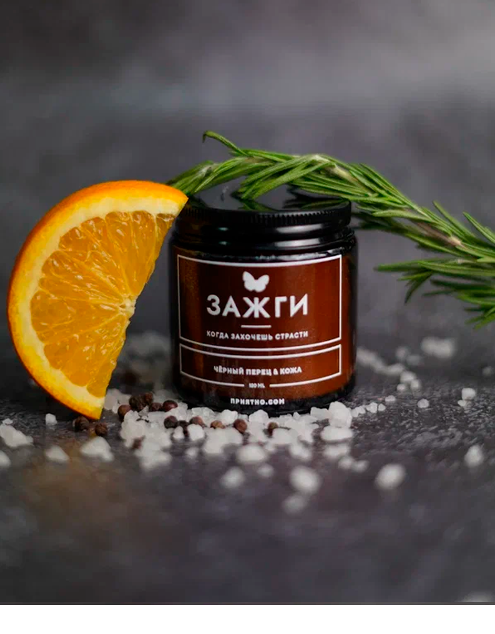 ЗАЖГИ свечу в стекле из 100% соевого воска с ароматом “Черный перец и кожа” - это сложный и неоднозначный аромат, который завораживает своей глубиной и многогранностью!