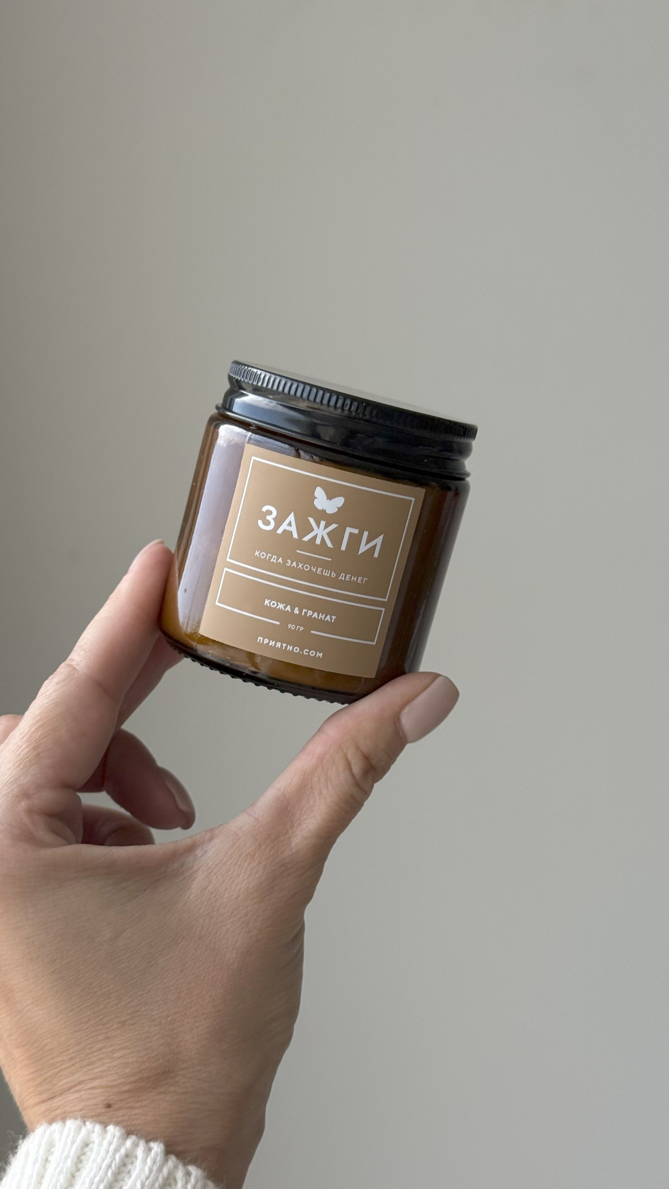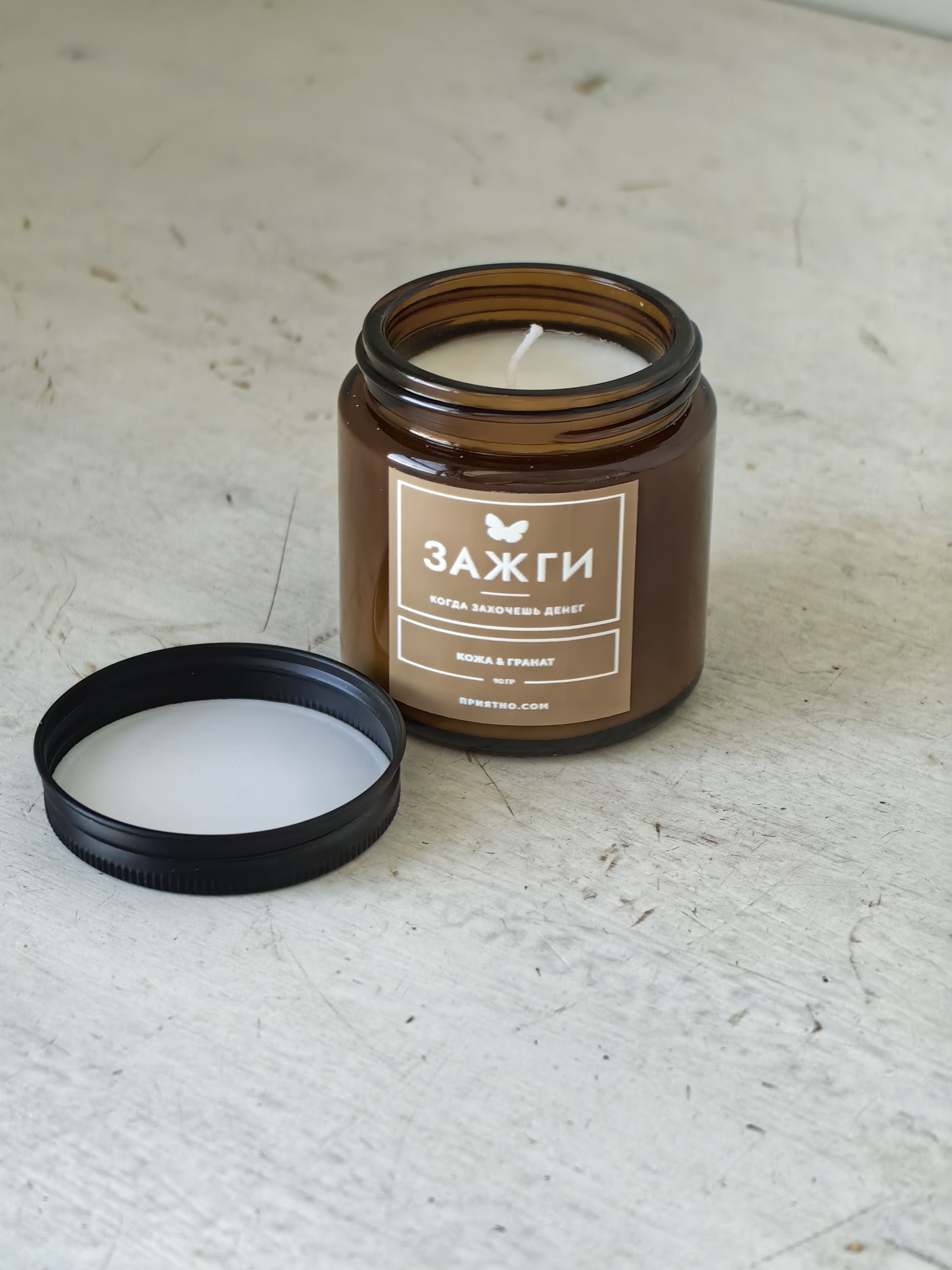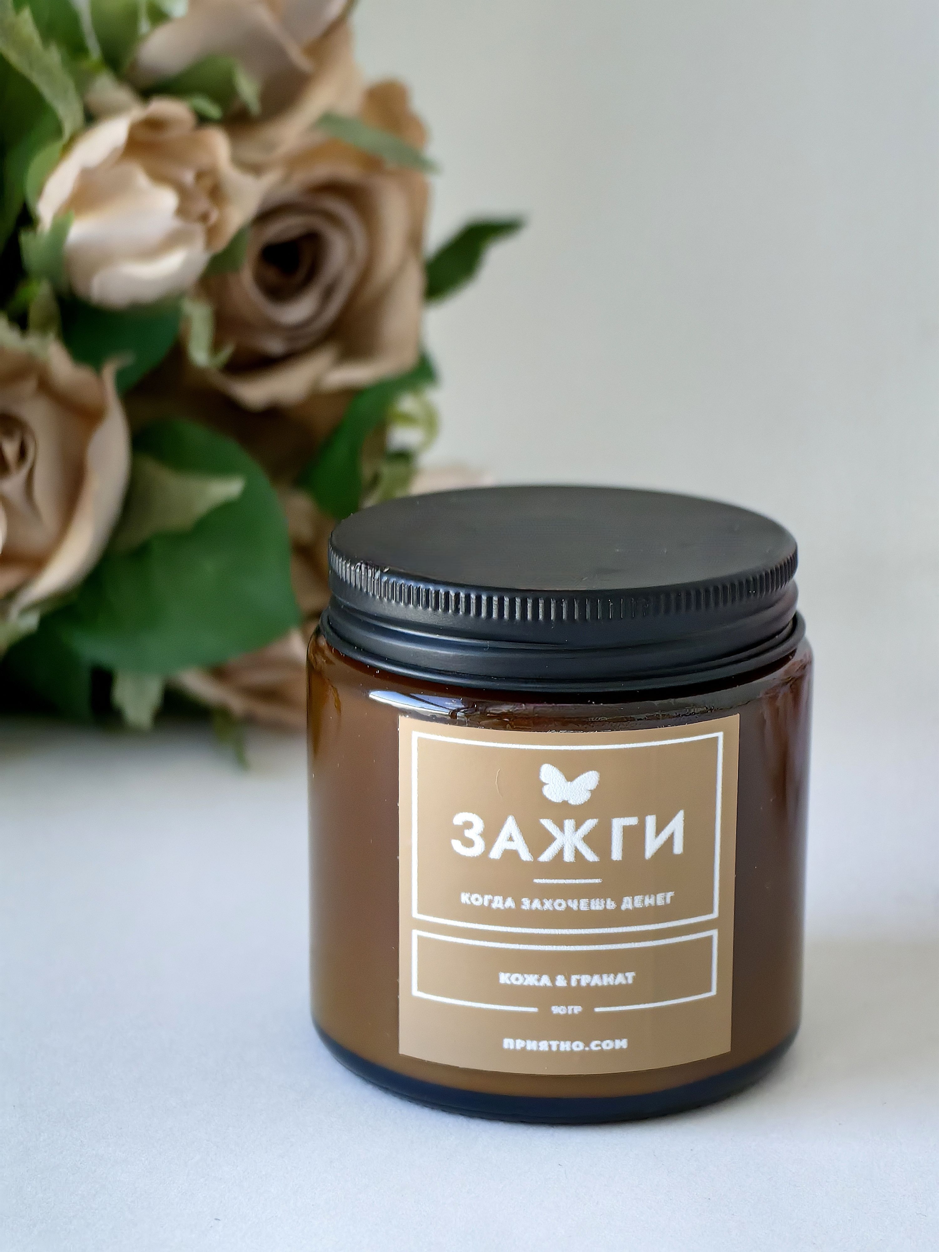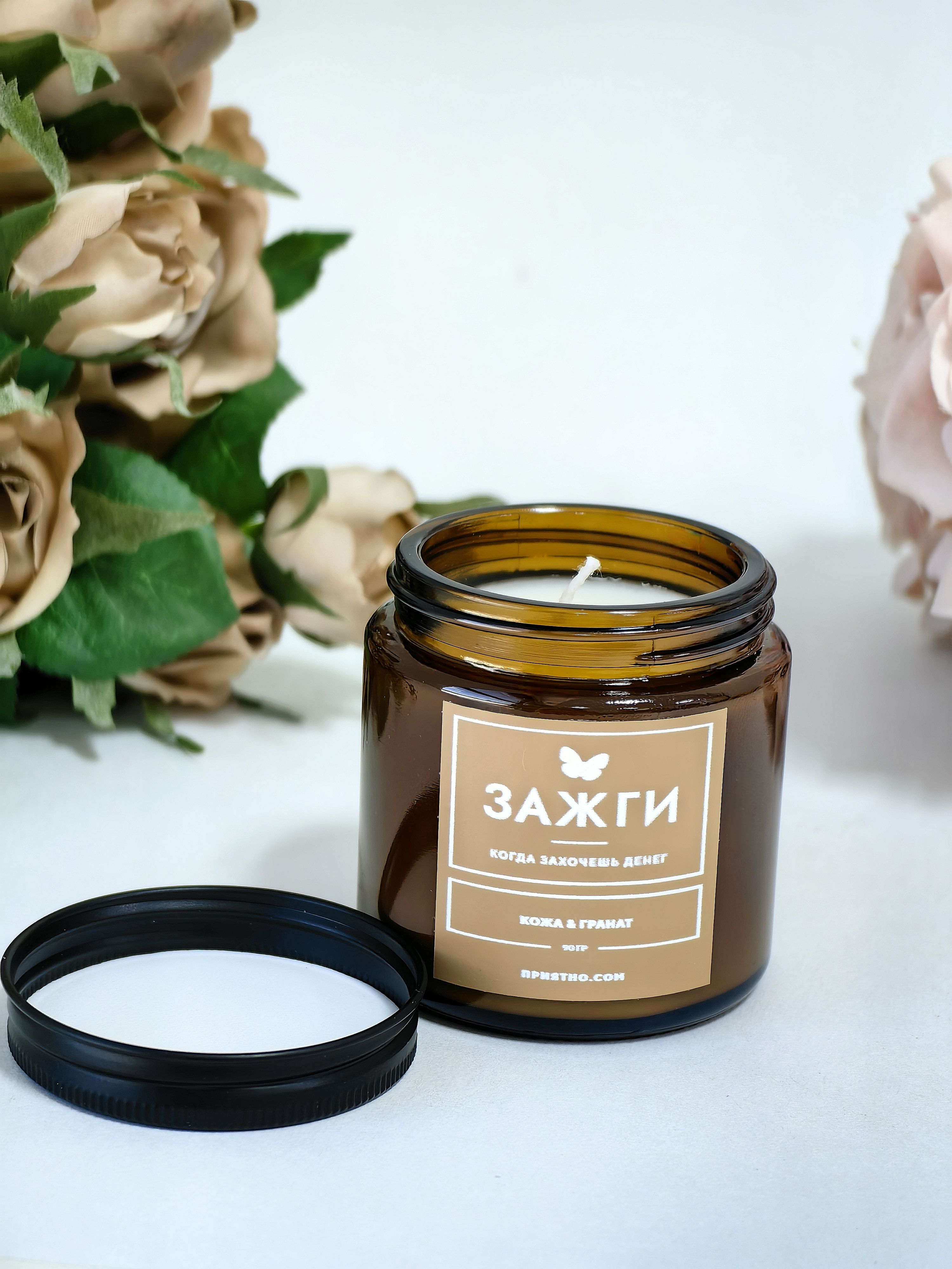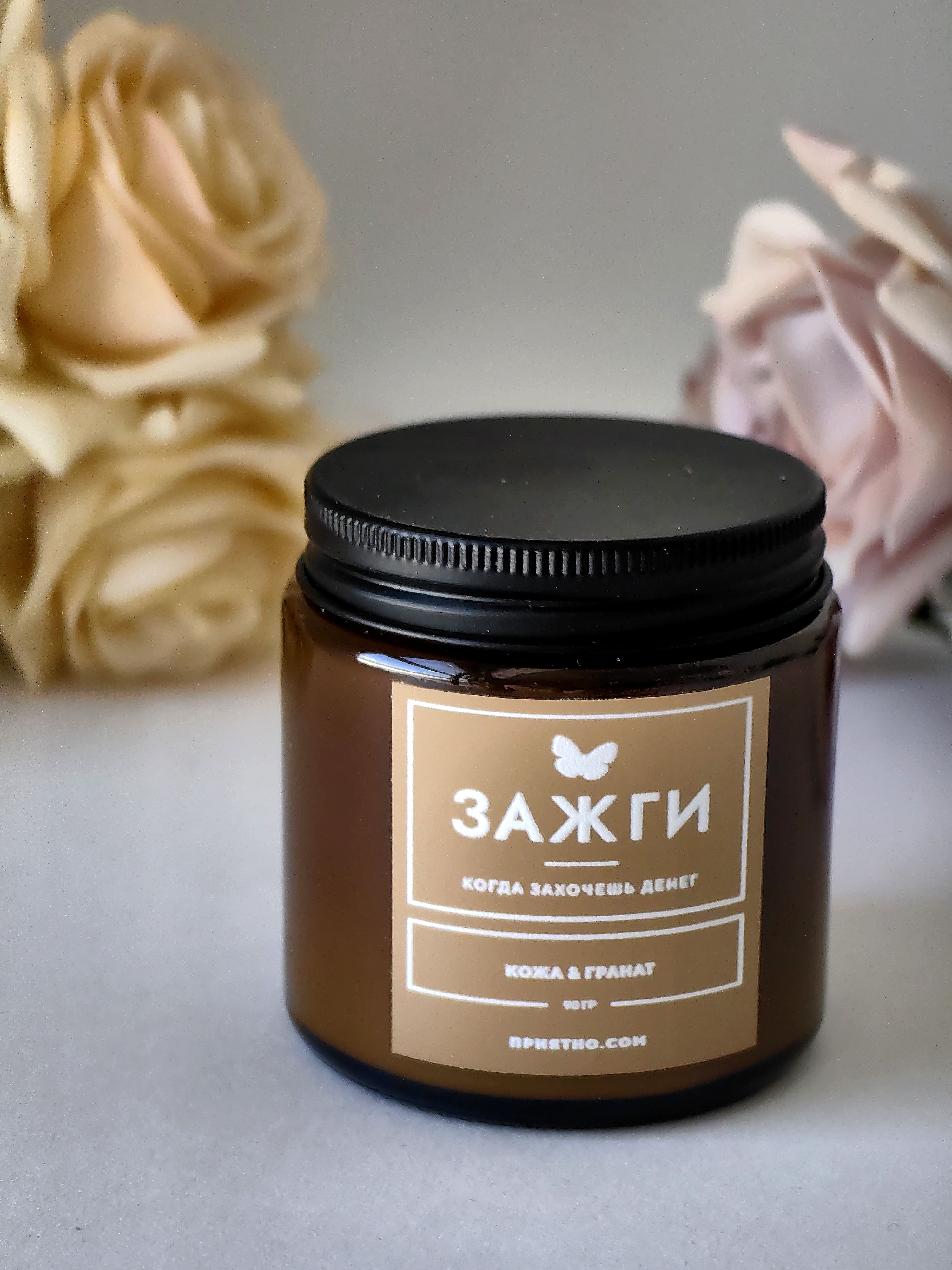 Ароматическая свеча - "ЗАЖГИ" | «Когда захочешь денег» | "Кожа & Гранат"