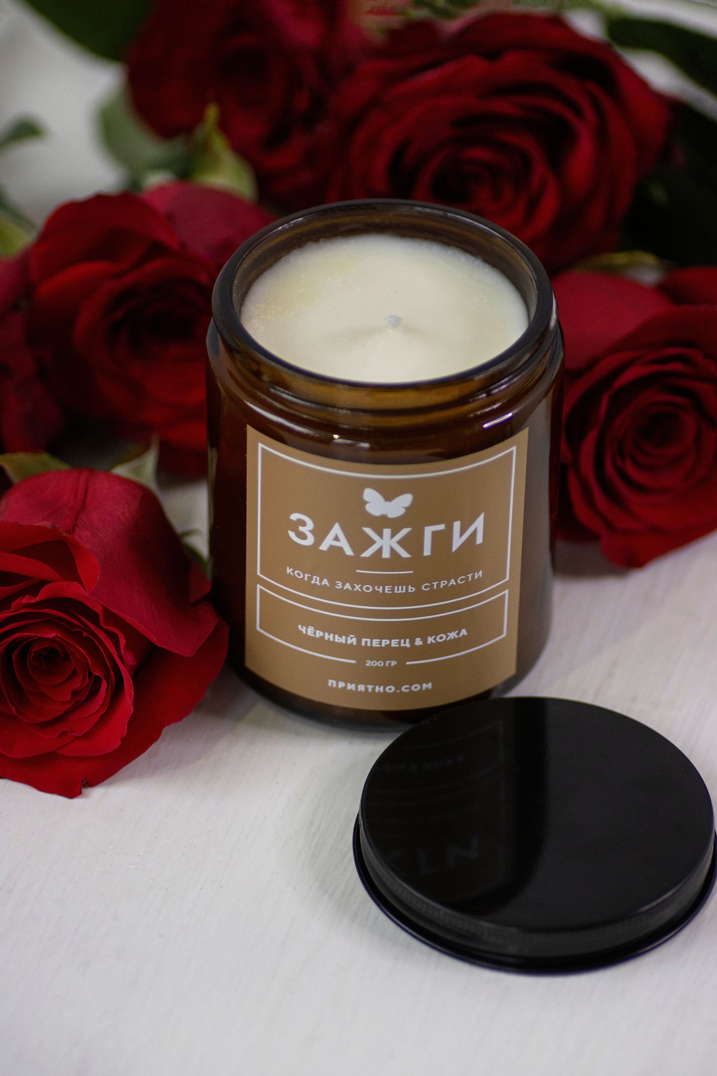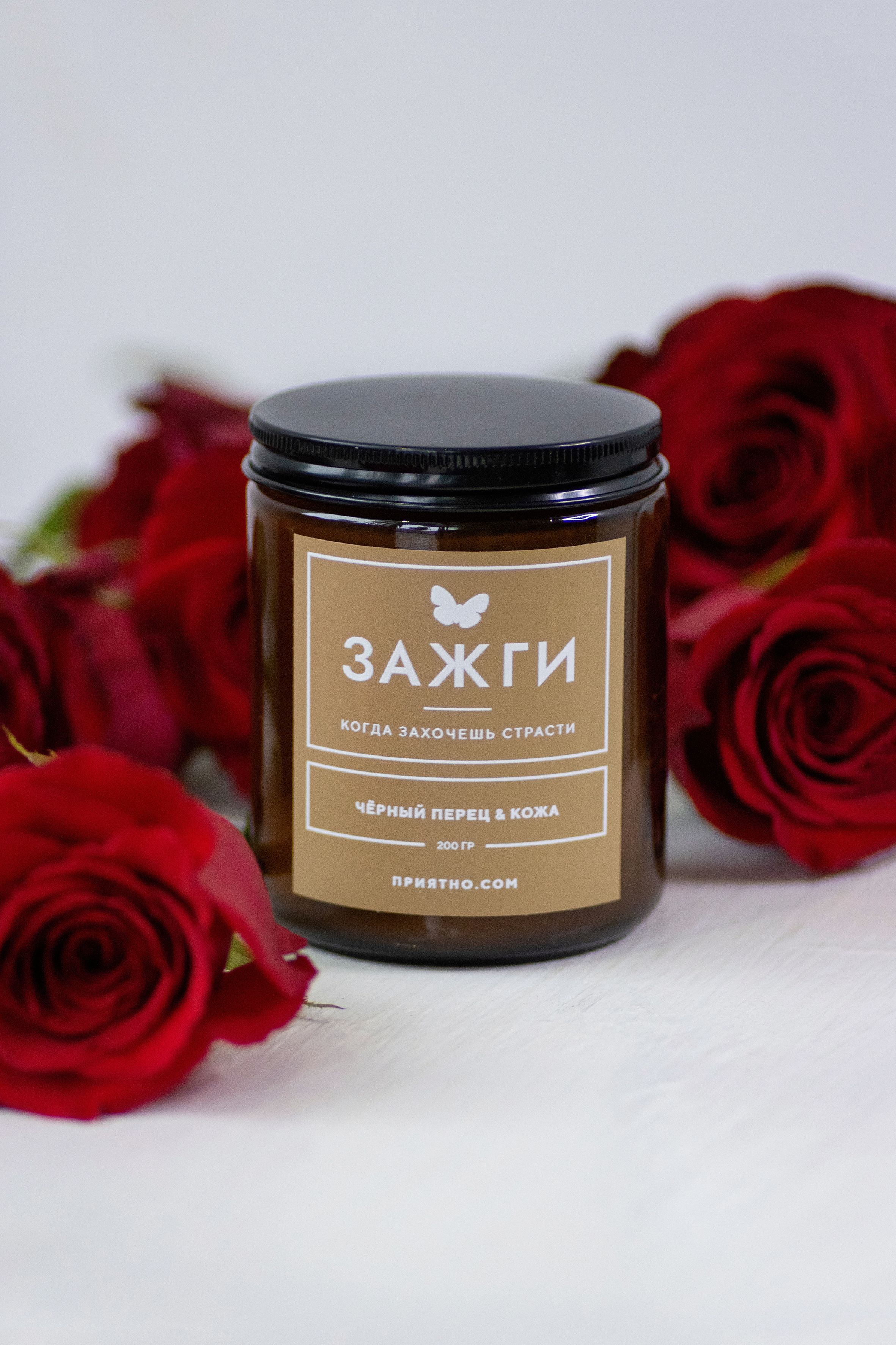 Аромасвеча «Чёрный перец & Кожа» | Когда захочешь страсти 200