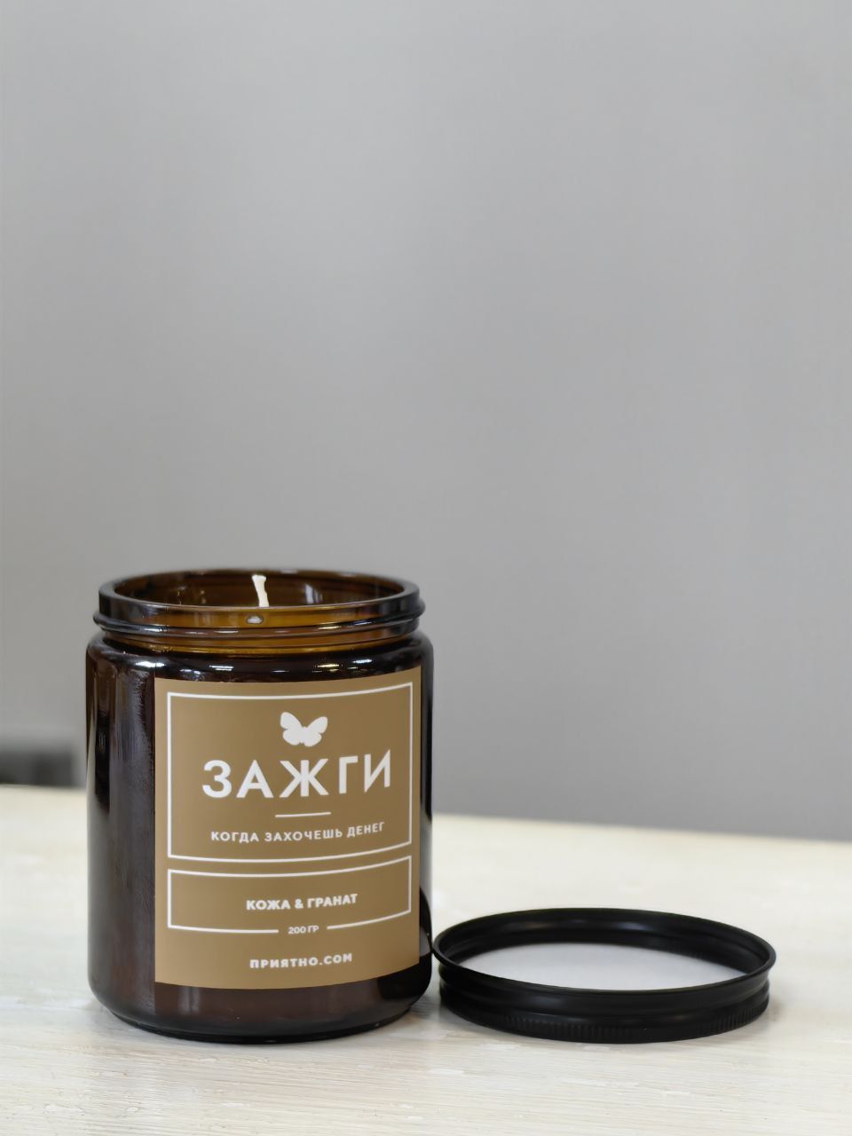 Аромасвеча "Кожа & Гранат" | «Когда захочешь денег»