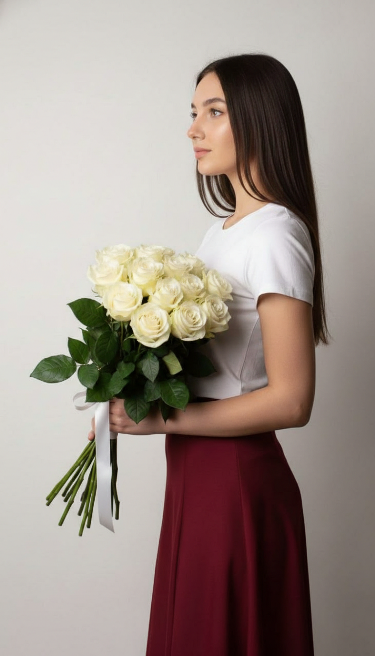 Самые искренние чувства не требуют громких слов и огромных жестов. Этот небольшой, но невероятно изящный букет из белых роз говорит о главном: о чистоте намерений, верности и хрупкой нежности зарождающейся любви. Он — как обещание счастья, тихое и светлое. Идеальный выбор для того, чтобы сделать самое важное признание или просто напомнить о своем трепетном отношении.