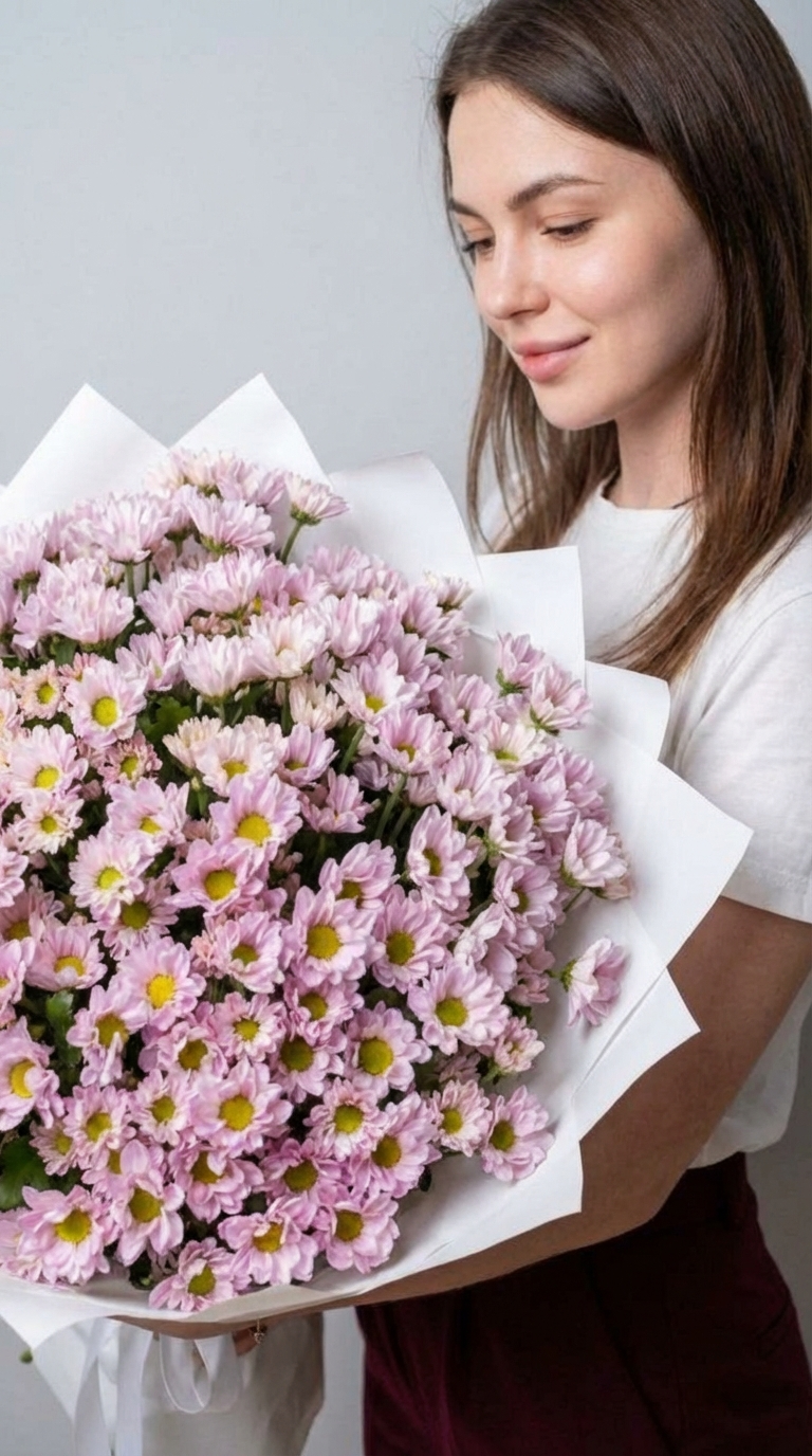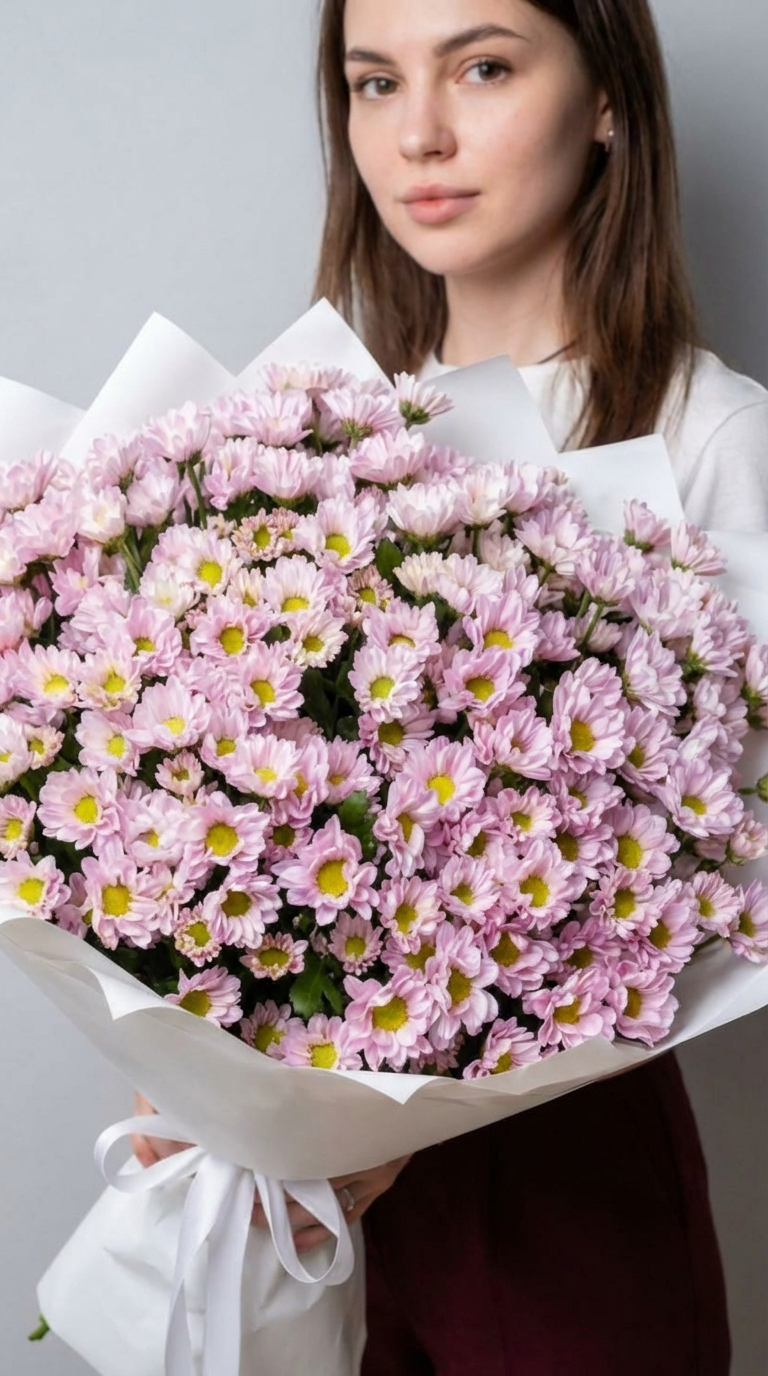 Букет «Розовое Облако» — это воплощение нежности и тепла. Каждая пушистая ромашковидная хризантема в этом миксе создаёт ощущение лёгкого цветущего сада. Подарите этот долгостоящий и невероятно пышный букет, чтобы выразить свои самые тёплые чувства без слов. Наше «Розовое Облако» принесёт в любой дом уют и радость. Доставим в идеальном состоянии!