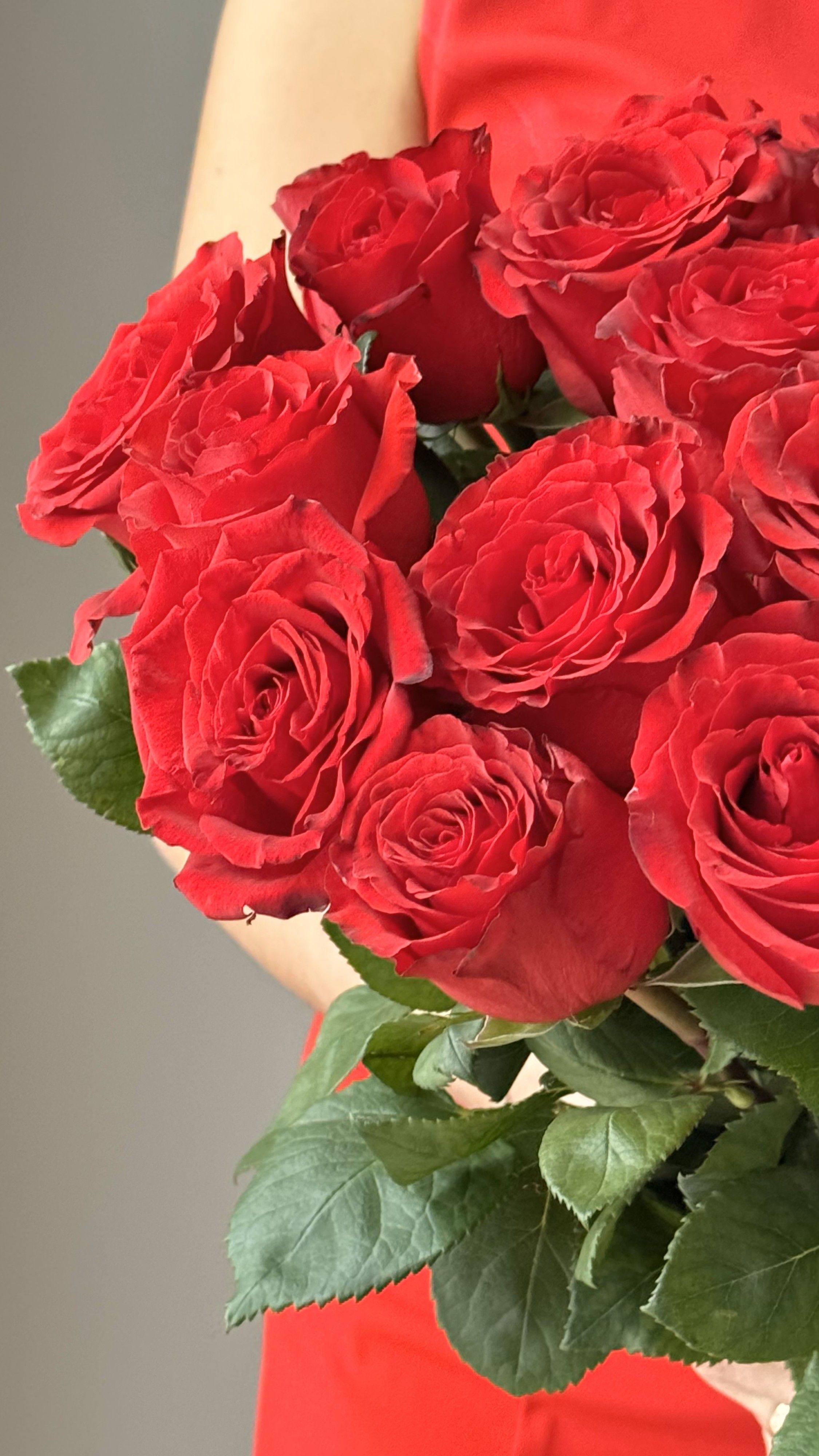 "Пылающее Сердце" – эксклюзивный моно-букет из красных премиум-роз