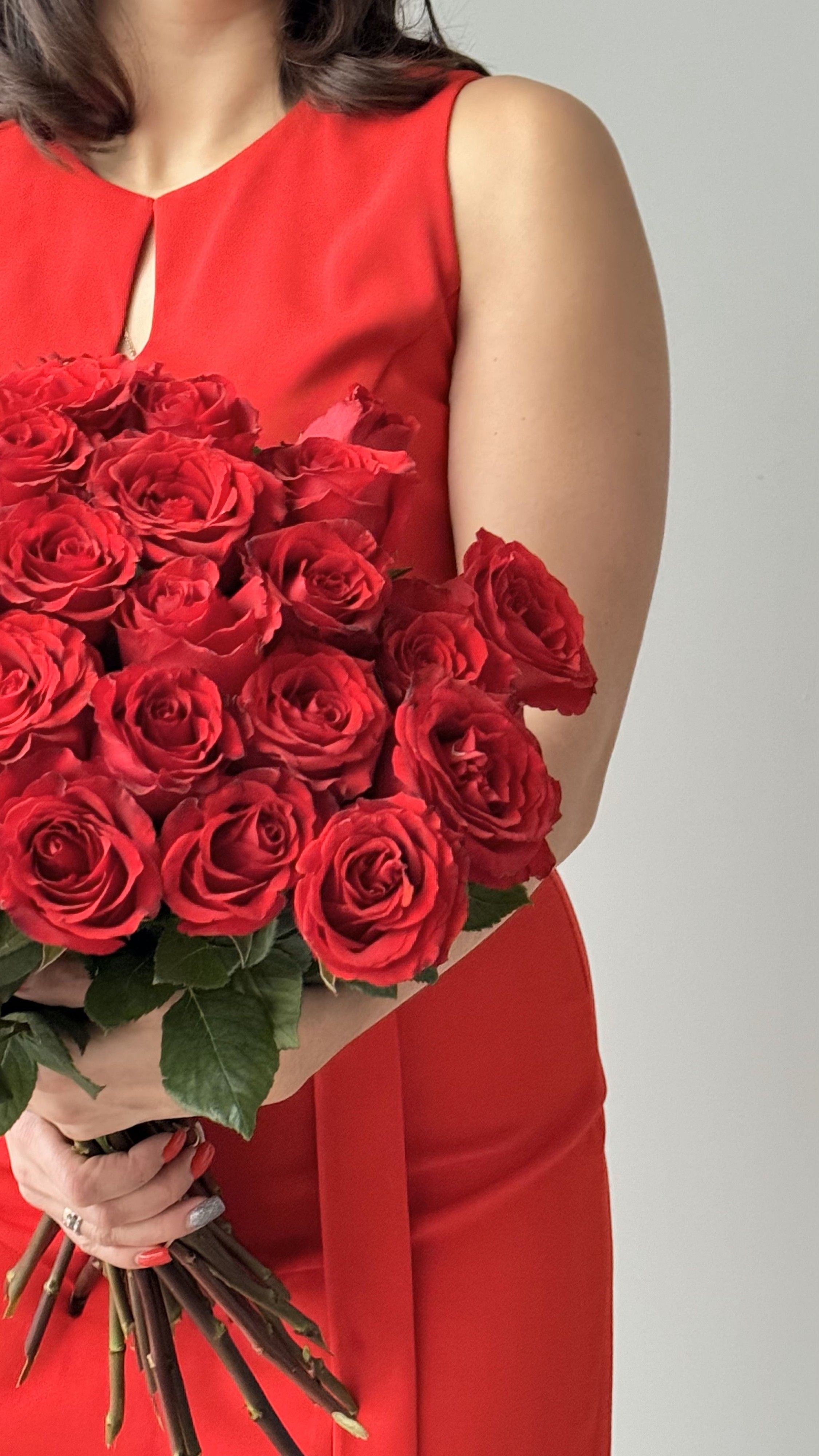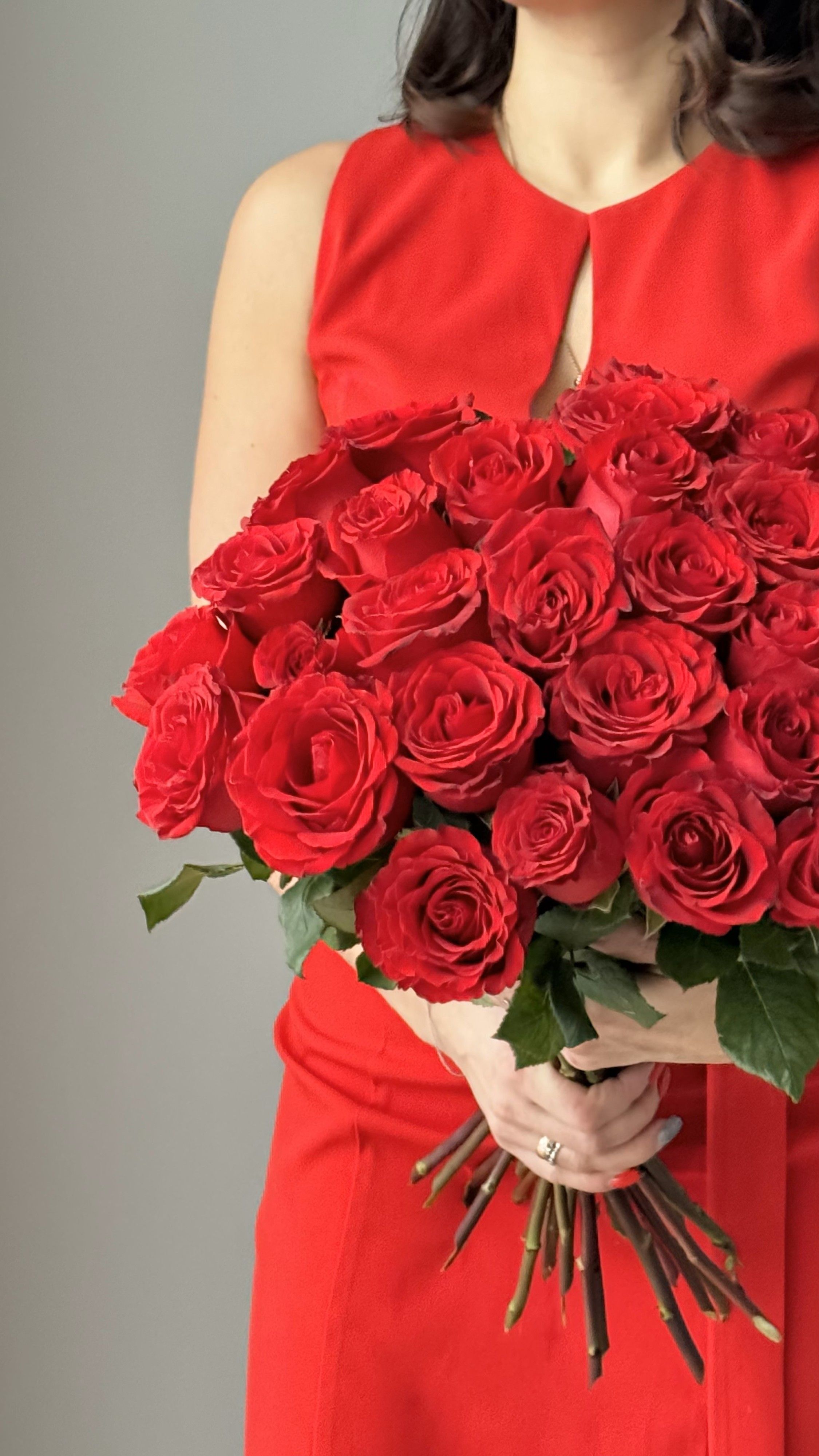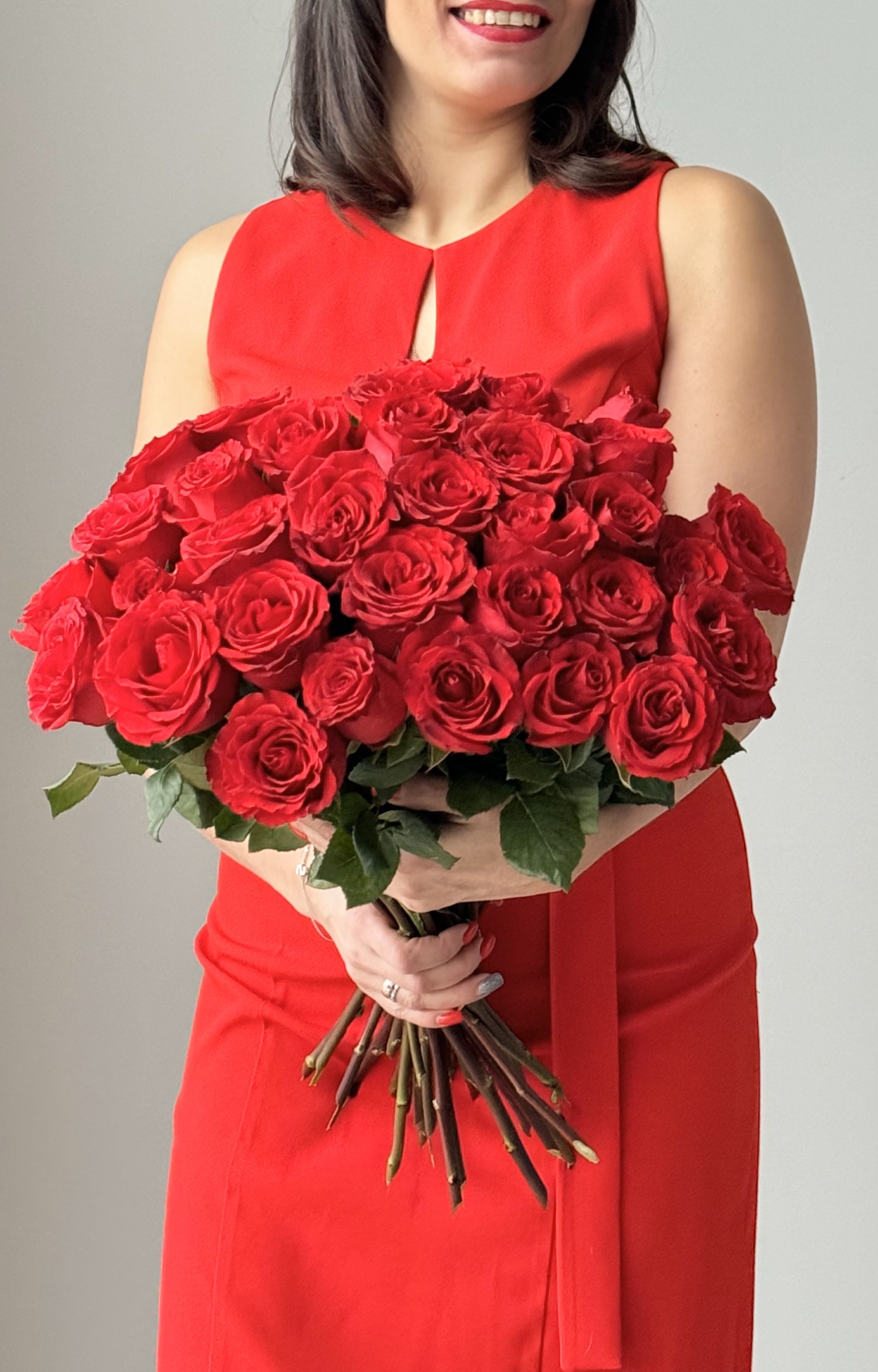 "Пылающее Сердце" – эксклюзивный моно-букет из красных премиум-роз