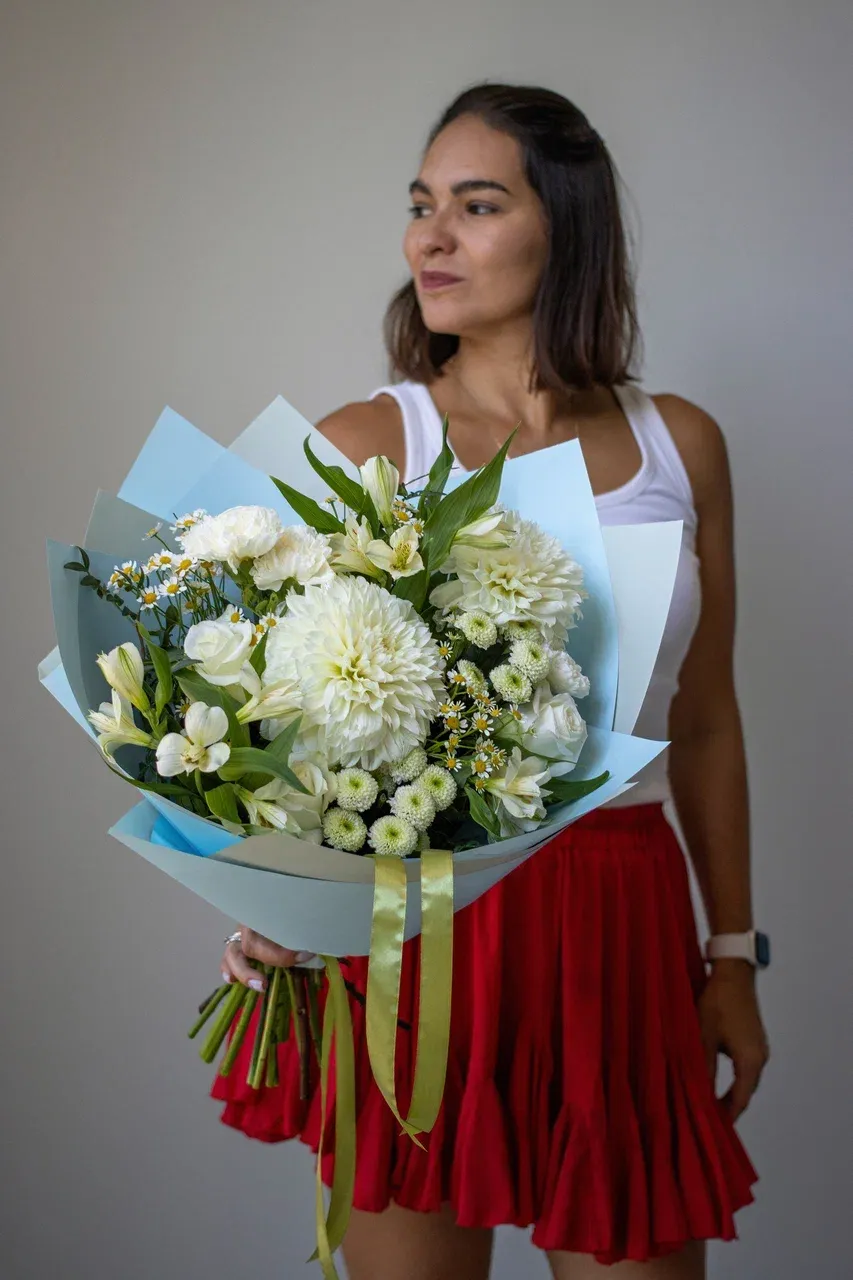 Ищете идеальный букет для любого случая? Мы предлагаем вам красивый летний букет в белых оттенках, который станет прекрасным подарком на день рождения, юбилей, свадьбу или просто так.