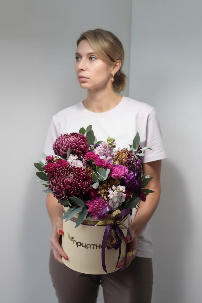 Из-за сезонности цветов возможны отличия — уточняйте наличие на дату.