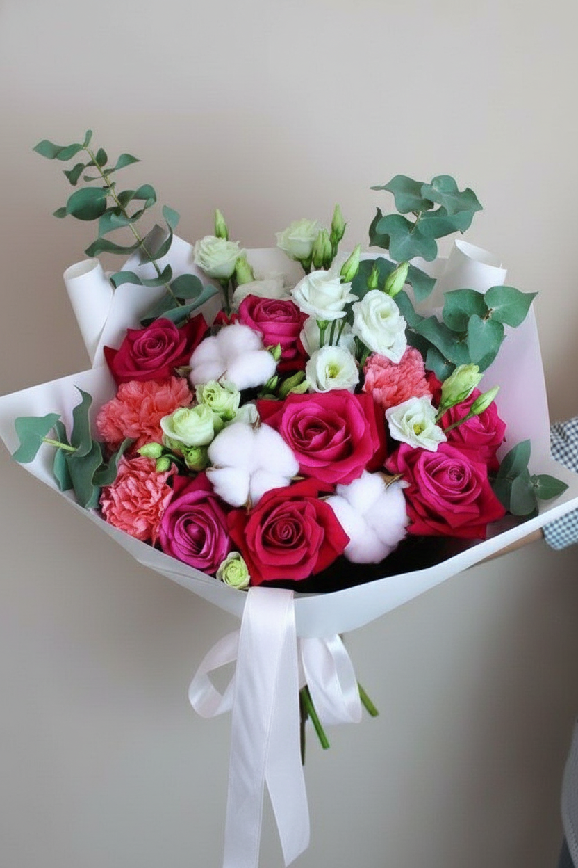 Букет «Счастье в деталях»: Яркие краски и нежность хлопка для самой любимой мамы