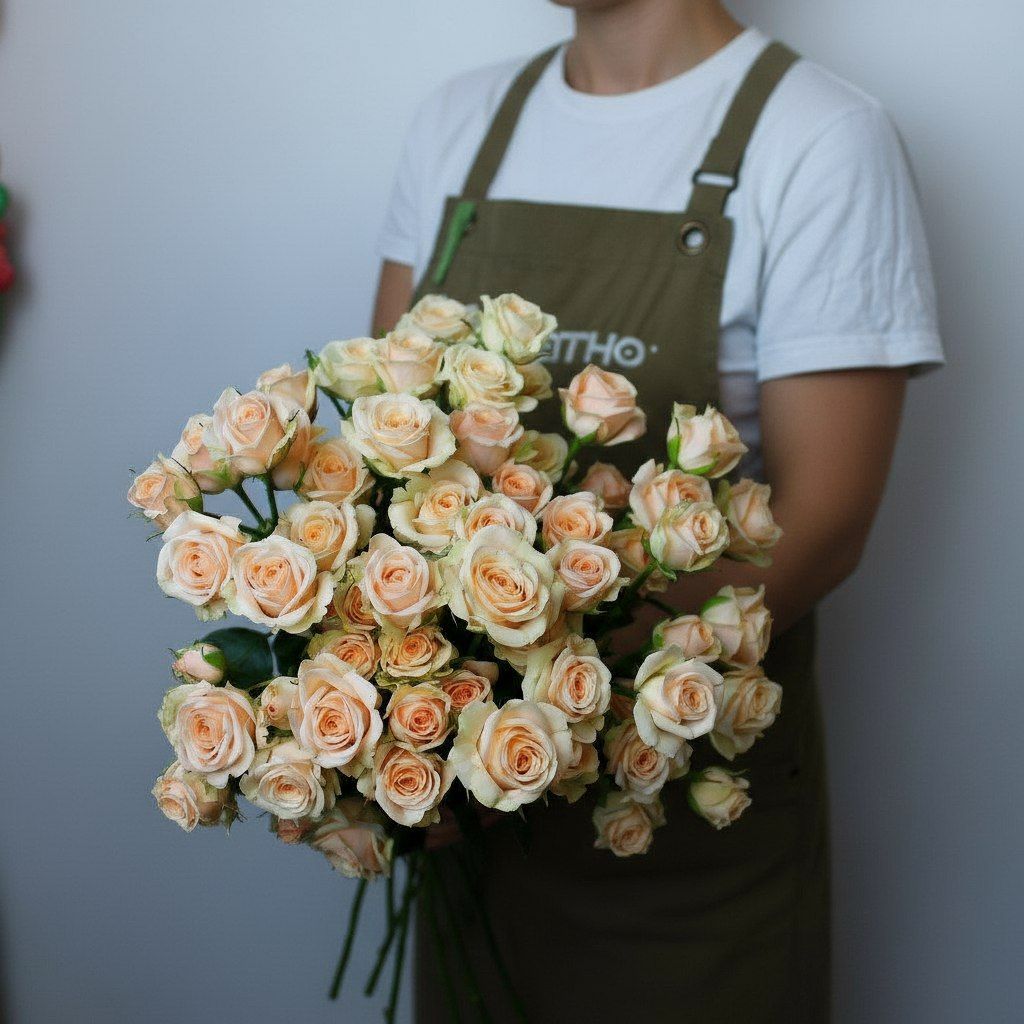 Создан, чтобы говорить с мамой на языке любви. Этот пышный моно-букет из нежнейших персиковых кустовых роз — больше, чем просто цветы. Это ваша благодарность, забота и всё то тепло, что вы хотите ей подарить.