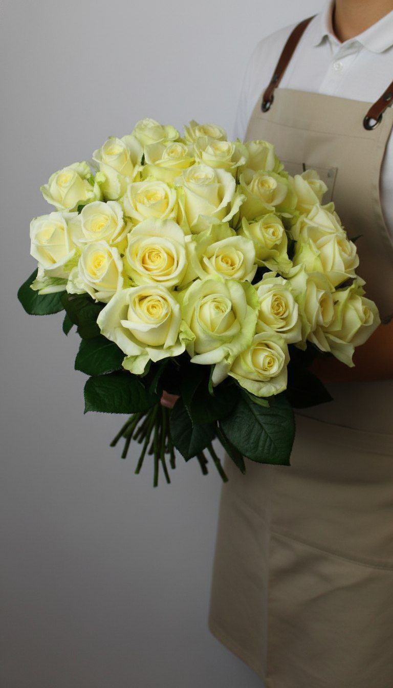 Идеально сбалансированный букет ко Дню Матери из белых роз премиальных сортов. Без упаковки — чтобы подчеркнуть естественную красоту каждого бутона и элегантность простоты.