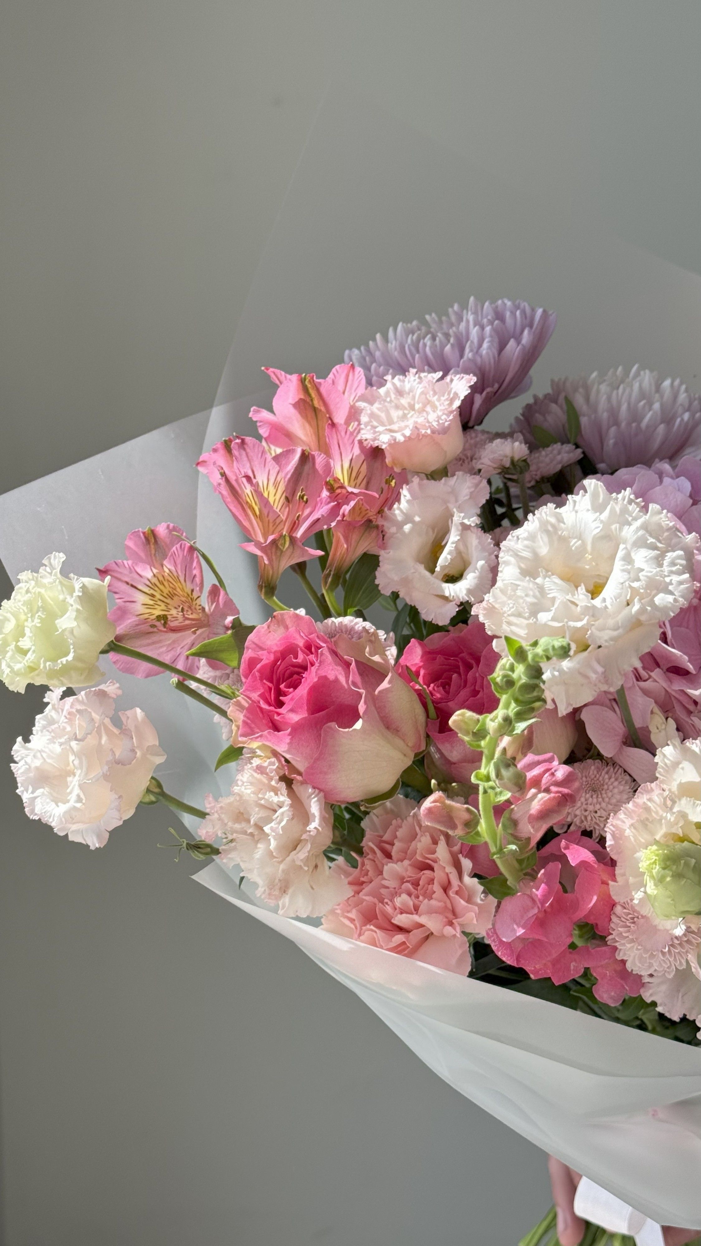 Букет "Сиреневое облако" — это пышный букет станет прекрасным подарком как от одного человека, так и от целого класса. Нежные оттенки розового и сиреневого, созданные с помощью альстромерии, гортензии, эустомы сорта Ду Алиса и декоративной хризантемы, леувенбека, подарят учителю или воспитателю ощущение заботы и внимания. Букет оформлен в красивую упаковку, которая подчеркнет его изысканность и торжественность. Доставка по указанному адресу сделает ваш подарок еще более особенным и приятным сюрпризом.