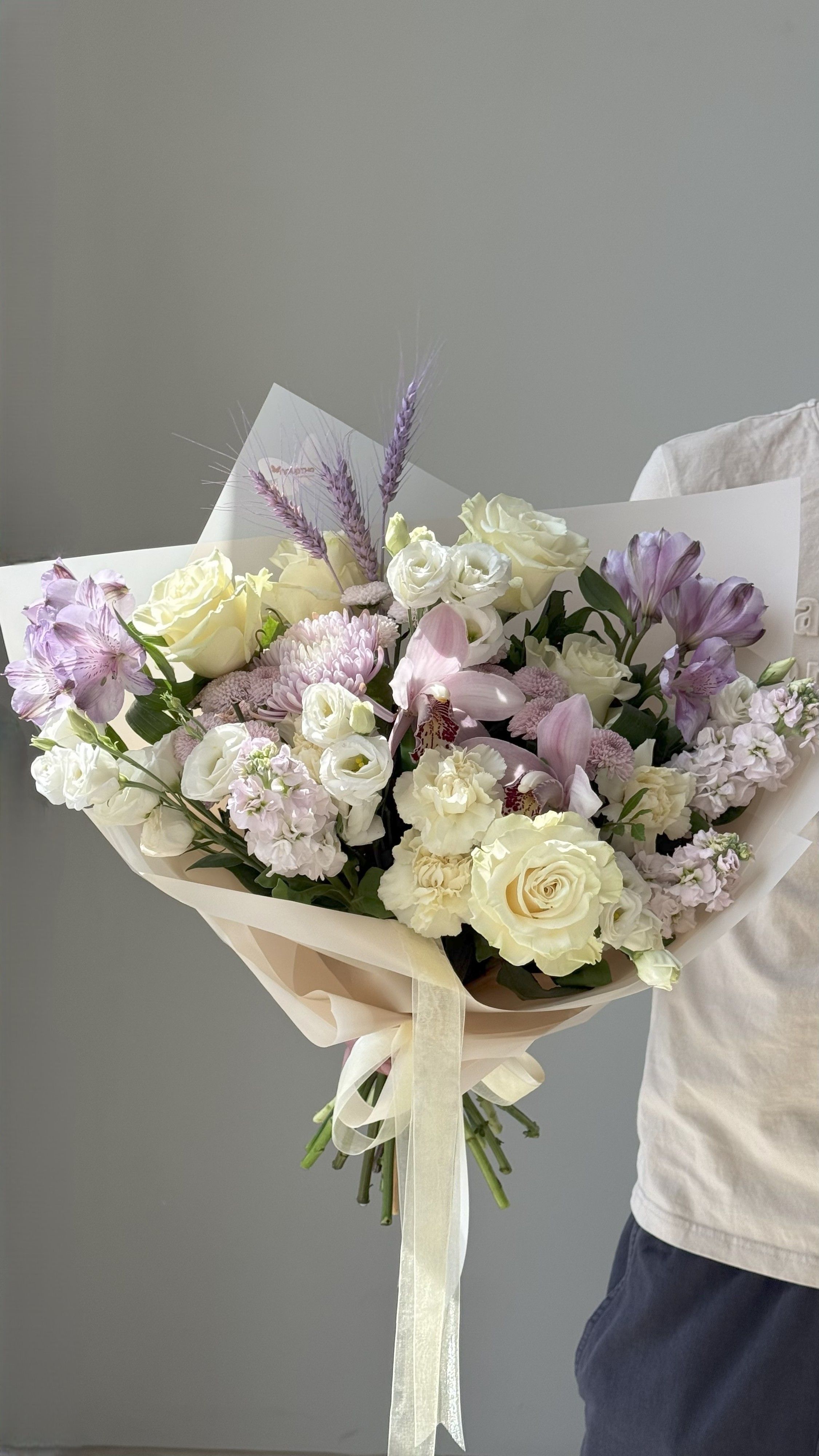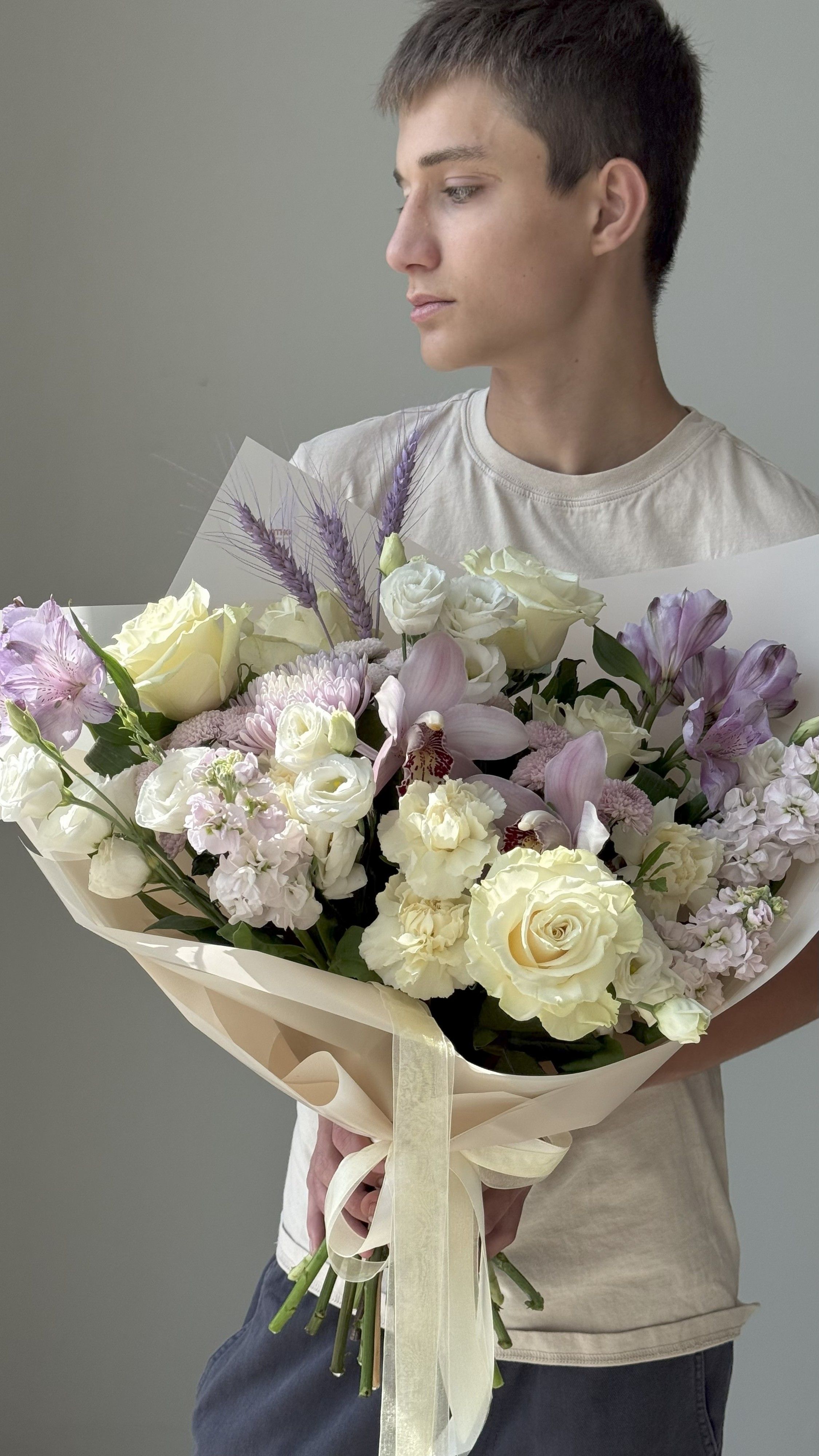 Букет на сайте уникален. На фото — пример. Из-за сезонности цветов возможны отличия — уточняйте наличие на дату.