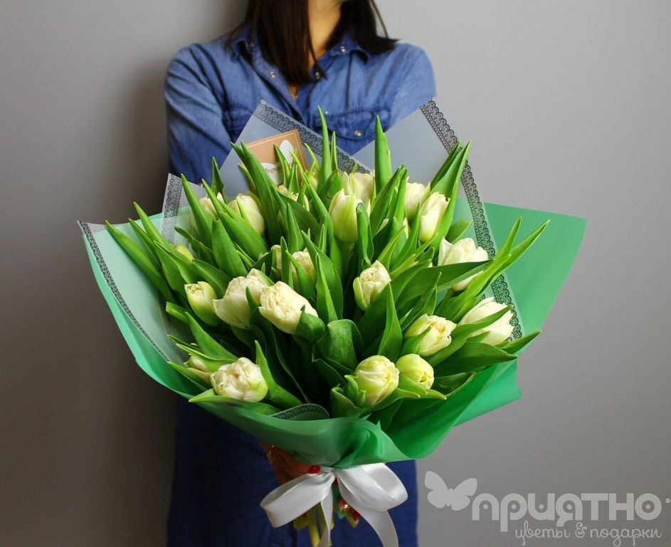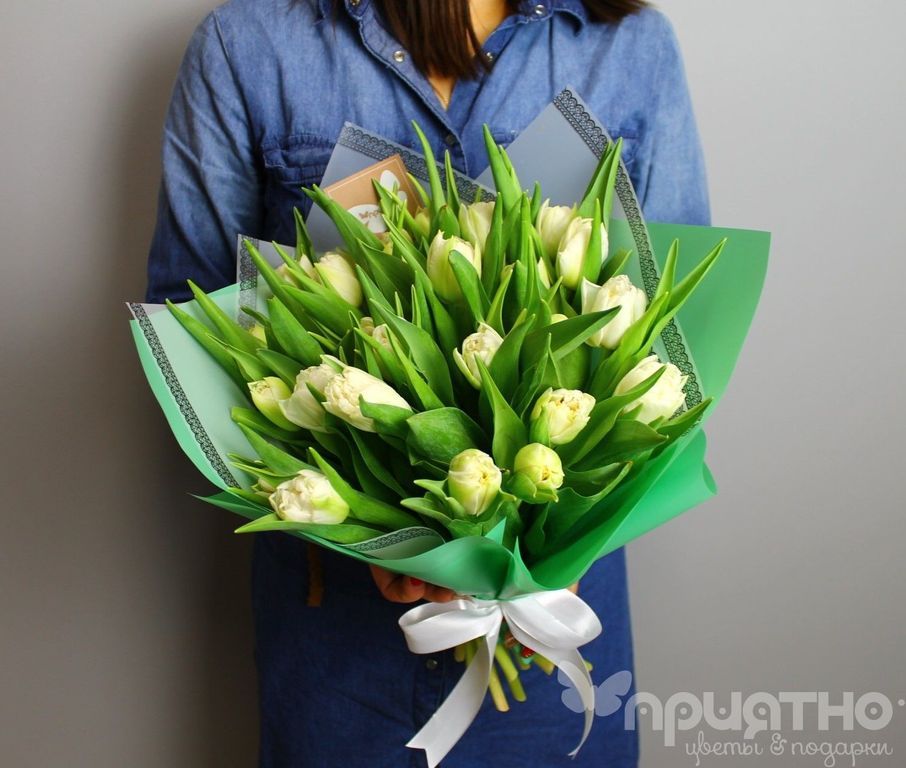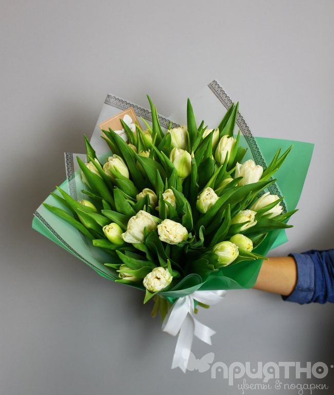 Монобукет из белых тюльпанов.