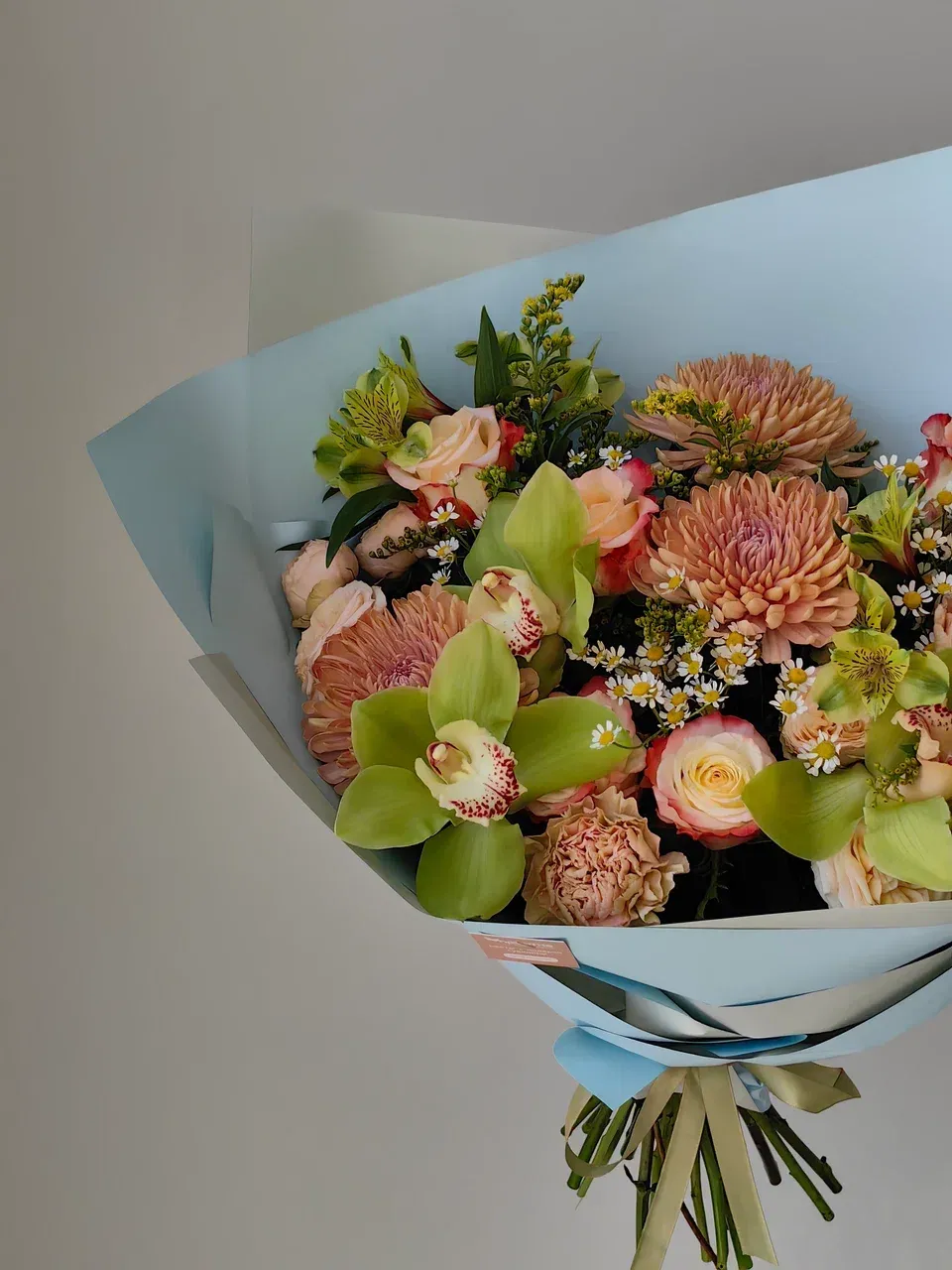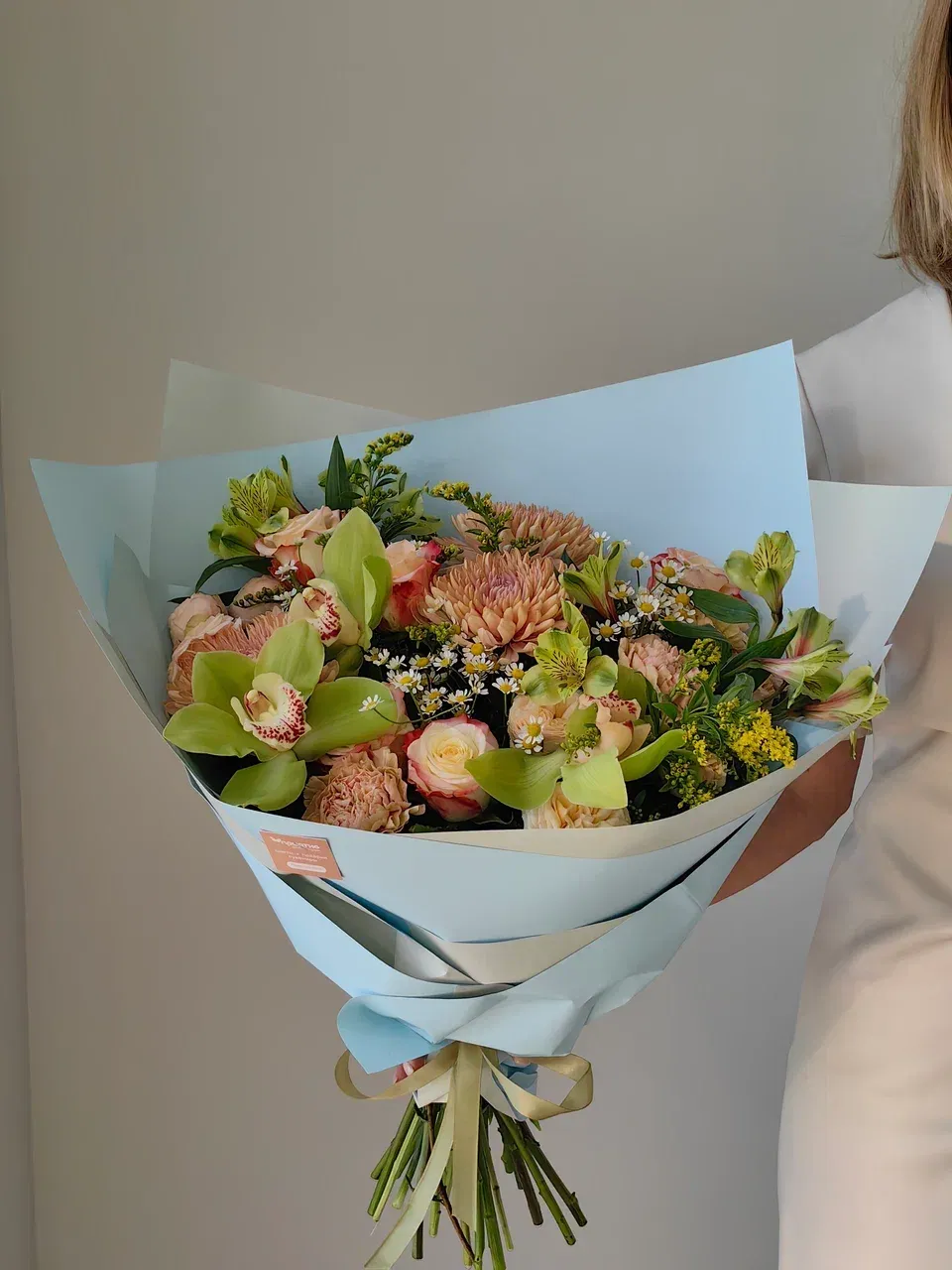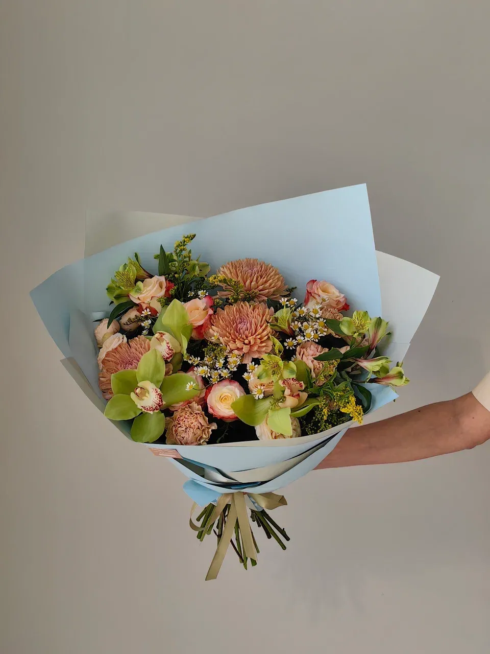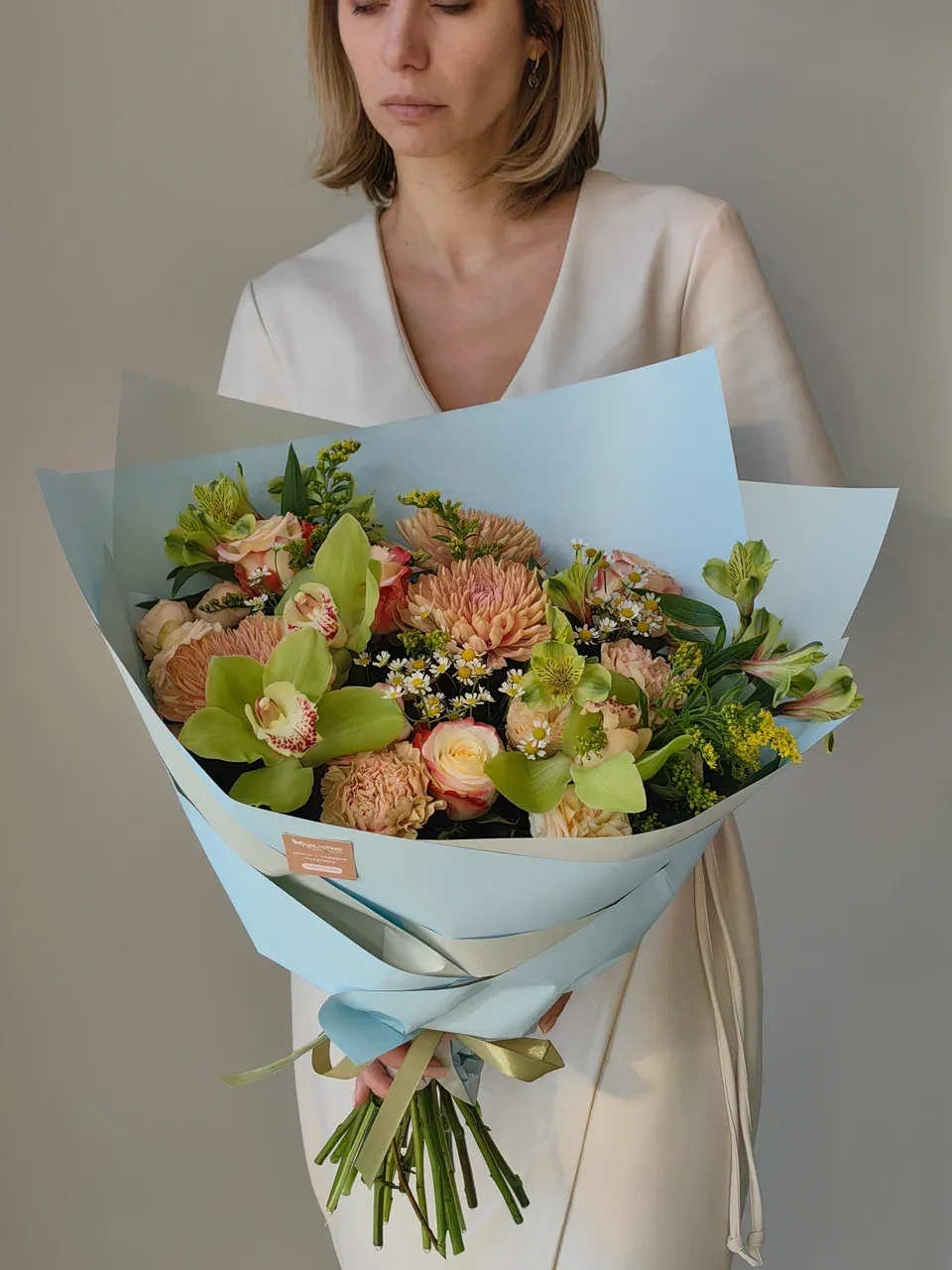 Тип букетаМногосоставный букетСезон☔ ВеснаЦветЗелёныйМини открытка в ПОДАРОКестьФотоотчёт - БЕСПЛАТНОестьДоставка💸 ПлатнаяОсновной цветокОрхидеяРазмер букетаСреднийУпаковкаКорейская плёнка