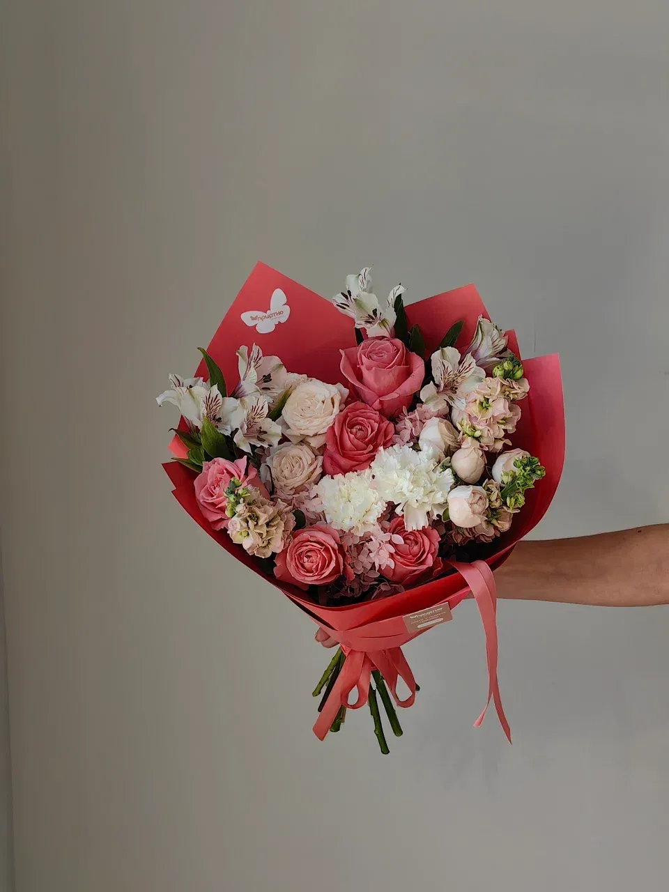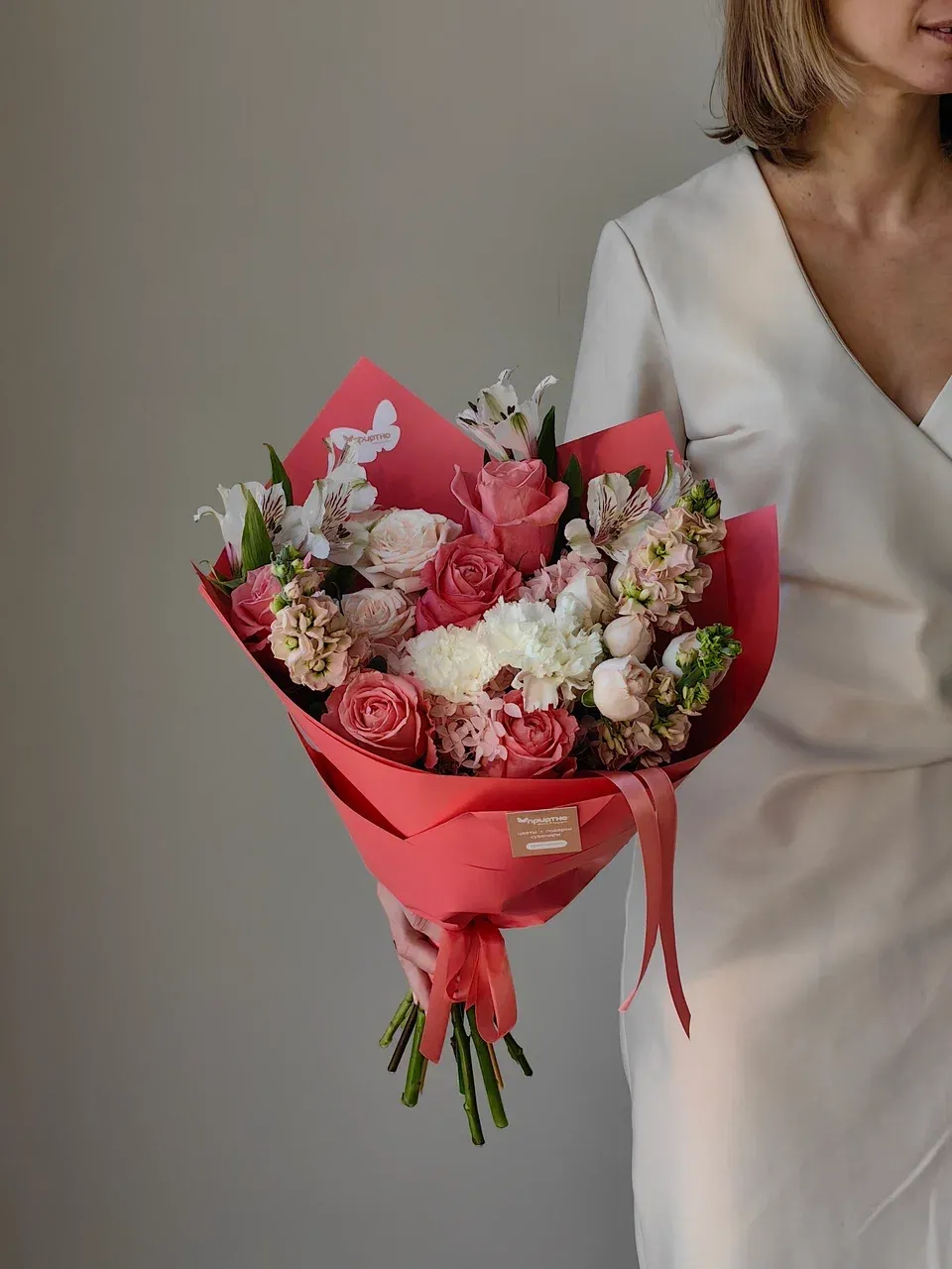 Погрузитесь в атмосферу утреннего кораллового рассвета с букетом "Коралловый Рассвет"! Этот яркий и свежий букет сочетает в себе изысканные маттиолу, диантус, светлые розы, пышные кустовые пионовидные розы и элегантные астрометрии. Всё это собрано в тёплых коралловых оттенках, которые напоминают о первых лучах весеннего солнца и наполняют сердце радостью.