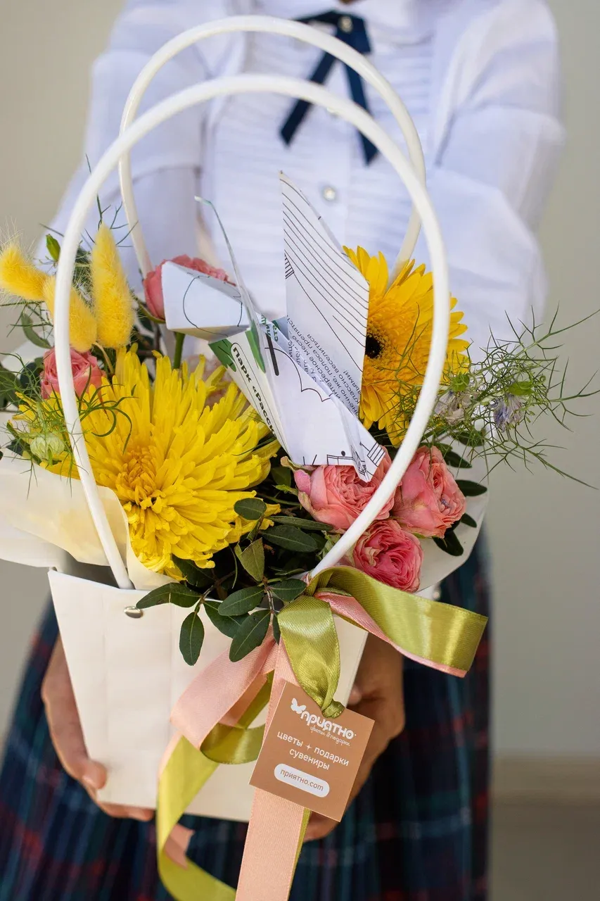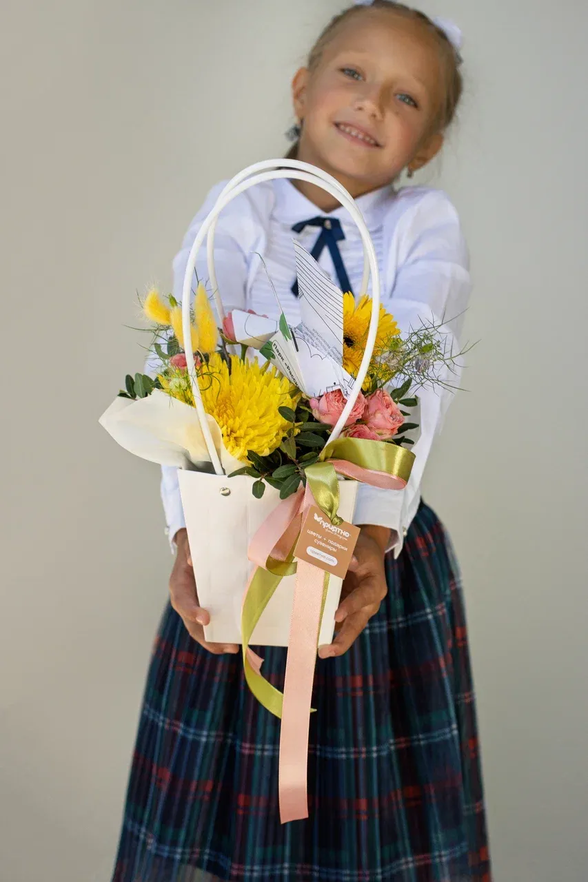 Ищете идеальный подарок к 1 сентября и Дню учителя? Наша яркая цветочная композиция в декоративной сумочке станет прекрасным выбором. Она сочетает в себе красоту и практичность, а также символизирует радость, энергию и благодарность за труд педагога.