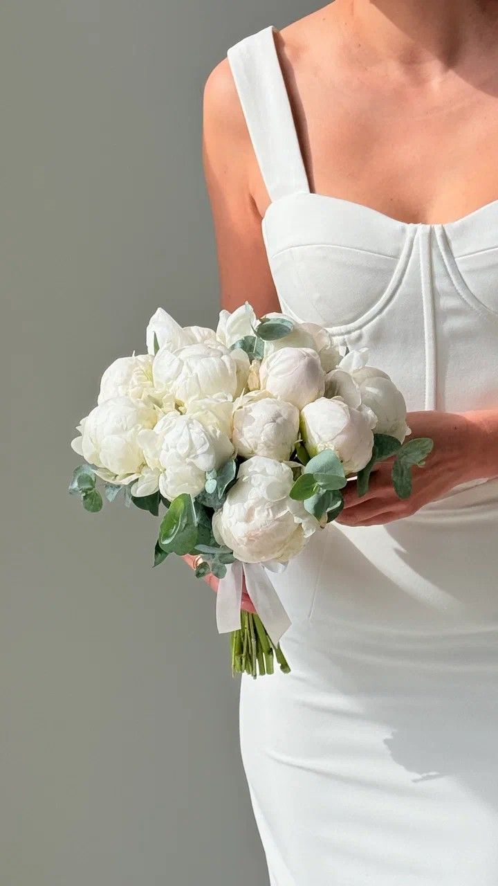 Подарите себе день, который останется в памяти, как шепот лепестков! Букет из белоснежных пионов — символ чистоты, нежности и вечной любви. Пышные бутоны, словно облака, обрамят ваш образ, добавив ноту элегантности и роскоши. Идеальный выбор для невесты, которая верит в магию простоты и природной красоты.
