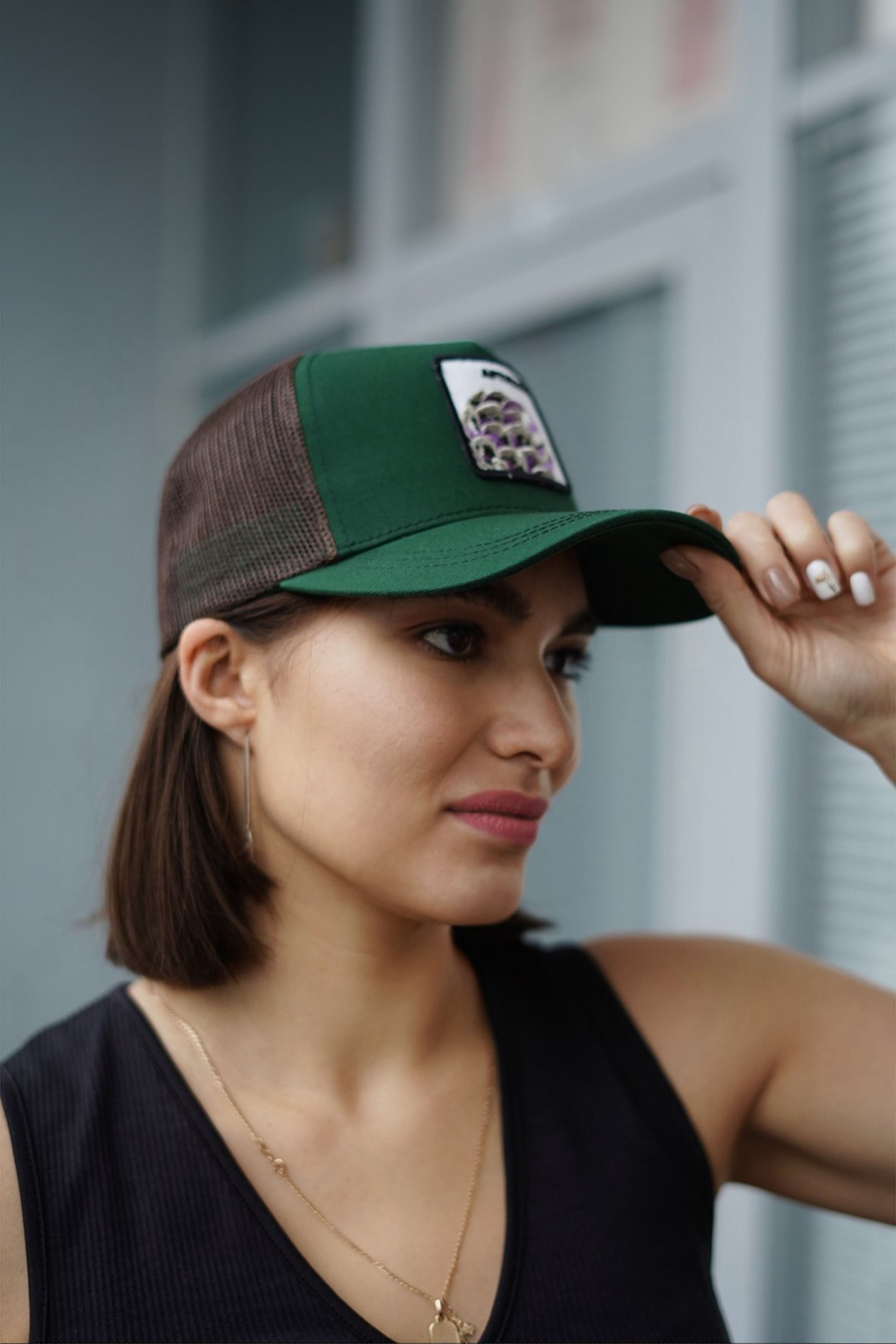 Уникальные элементы - фирменный логотип, приятная ткань и нестандартные форматы размещения бренда на кепке, вышитое изображение цветка