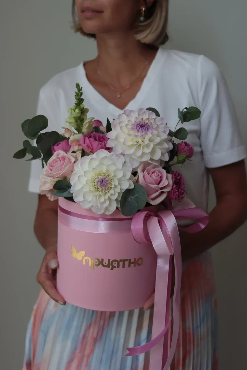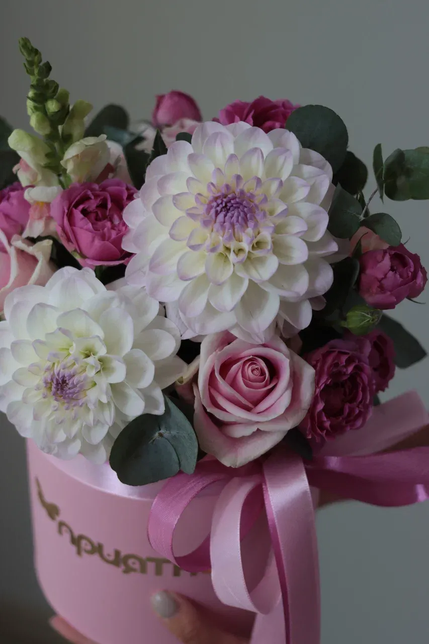 Закажите цветочную композицию в шляпной коробке из летних георгин прямо сейчас и подарите себе или своим близким незабываемые эмоции!