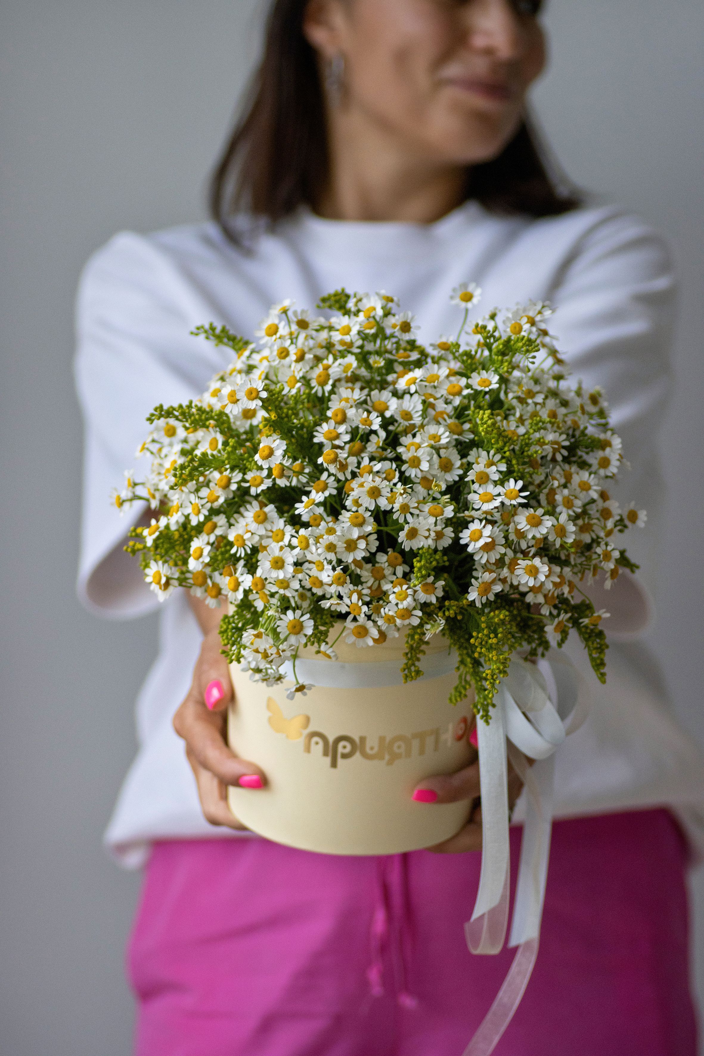 ТипКомпозиция в шляпной коробкеСезон✅ МежсезонныйМини открытка в ПОДАРОКестьФотоотчёт - БЕСПЛАТНОестьОсновной цветокРомашкаЦвет композицииНежныйРазмерМалаяДоставкаБЕСПЛАТНО (в рамках зон доставки и акции)