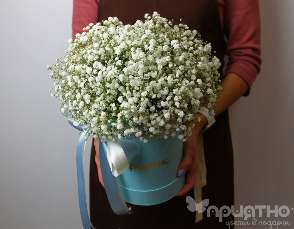 ТипКомпозиция в шляпной коробкеОсновной цветокГипсофилаЦвет композицииБелыйРазмерМалая