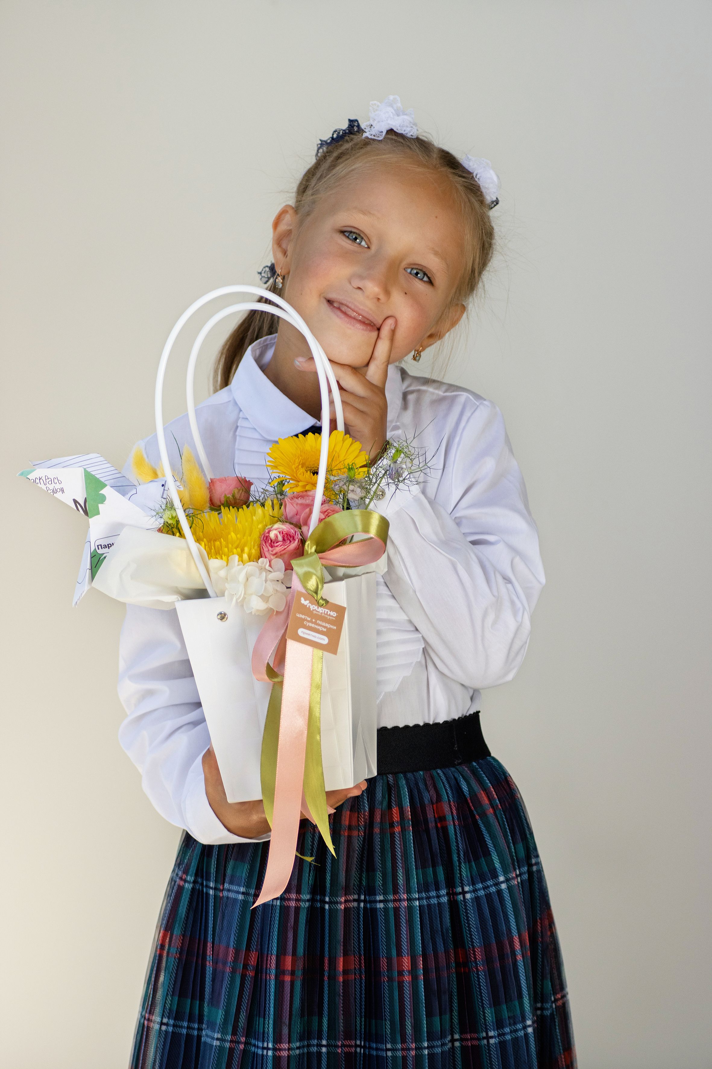 Мы предлагаем широкий выбор цветочных композиций на любой вкус и бюджет. Наши опытные флористы создадут букет, который будет соответствовать вашим пожеланиям и предпочтениям.Закажите цветочную композицию «Бело-жёлтое настроение» прямо сейчас и подарите своим учителям незабываемые эмоции и впечатления!