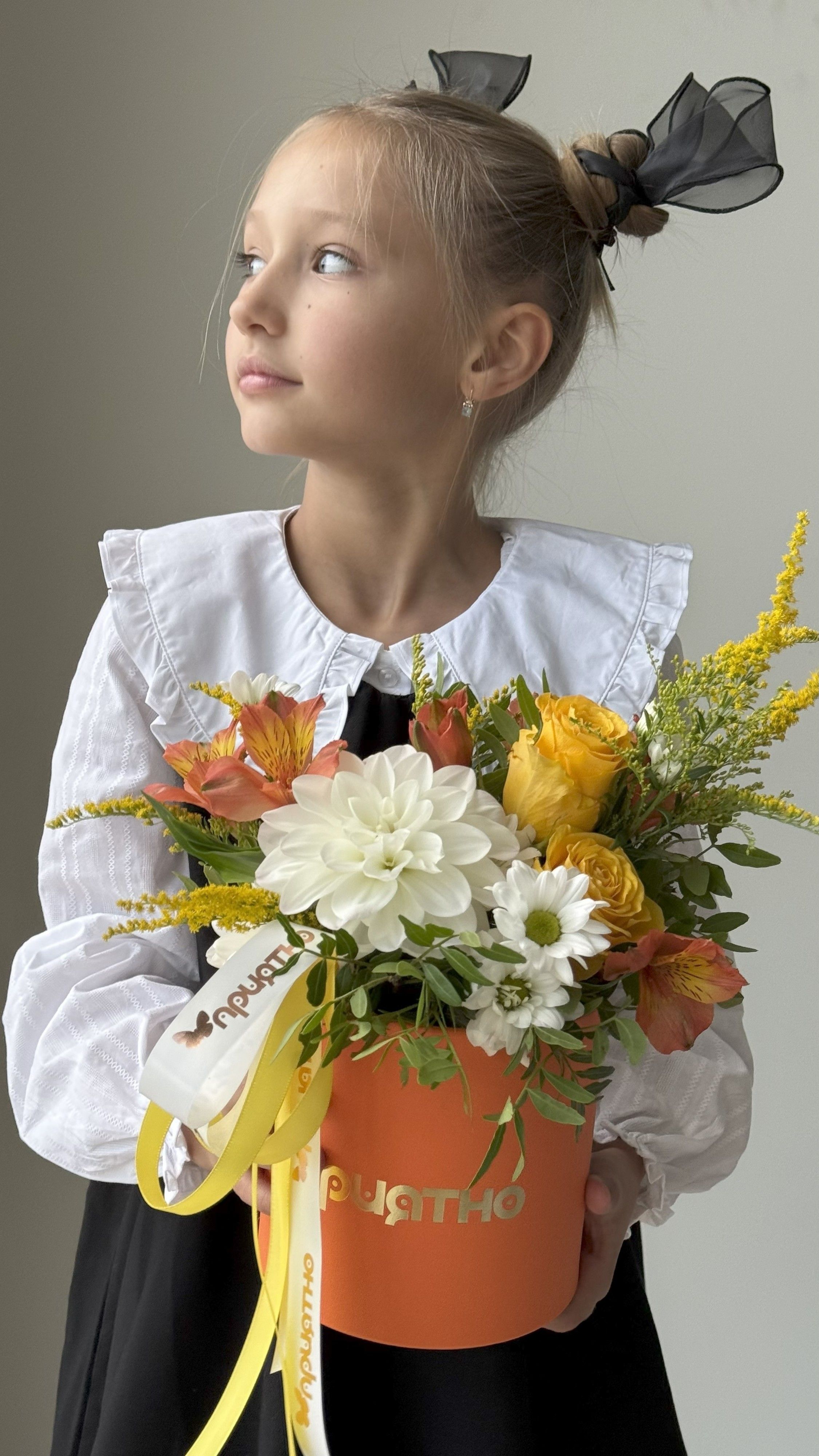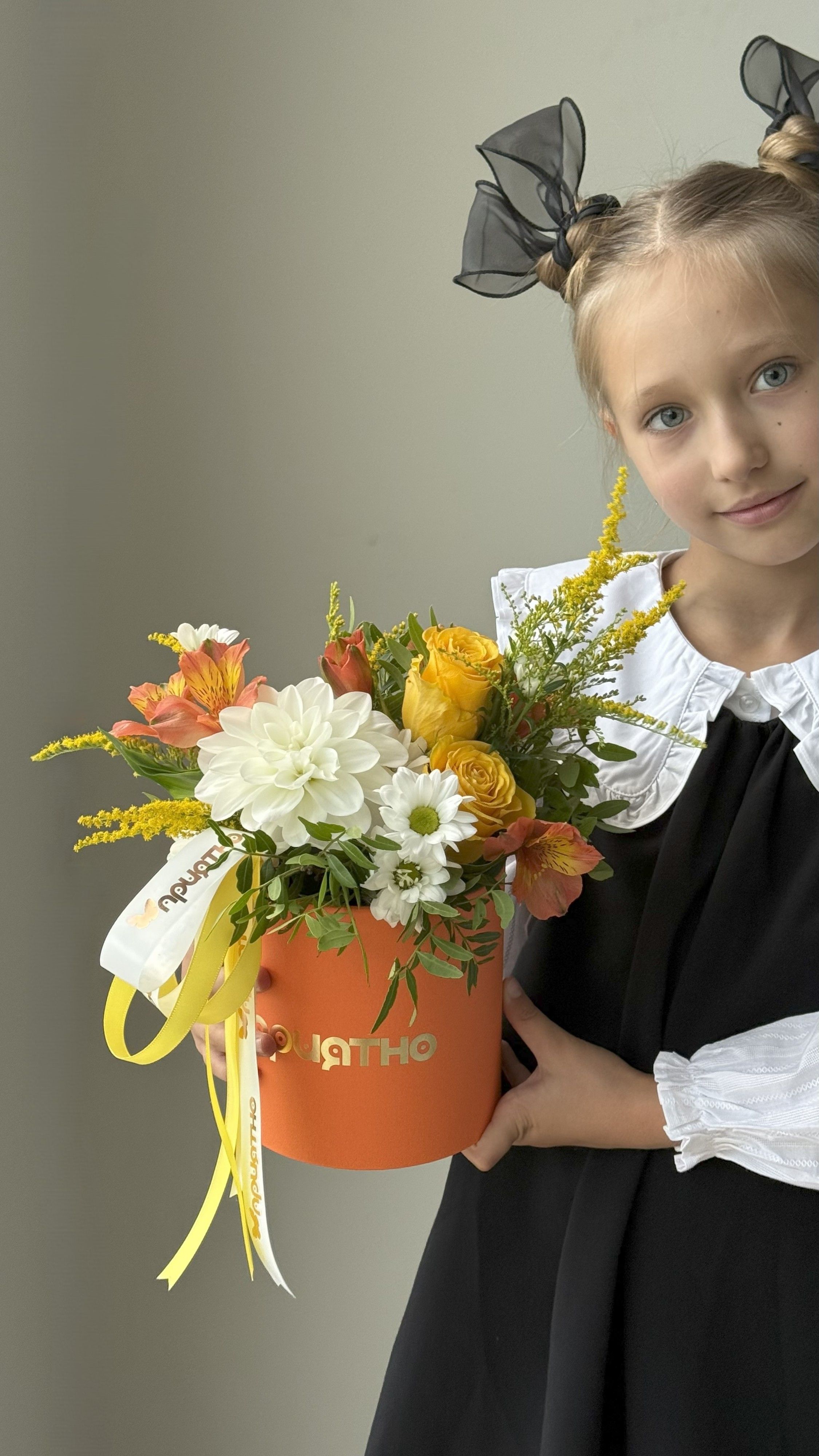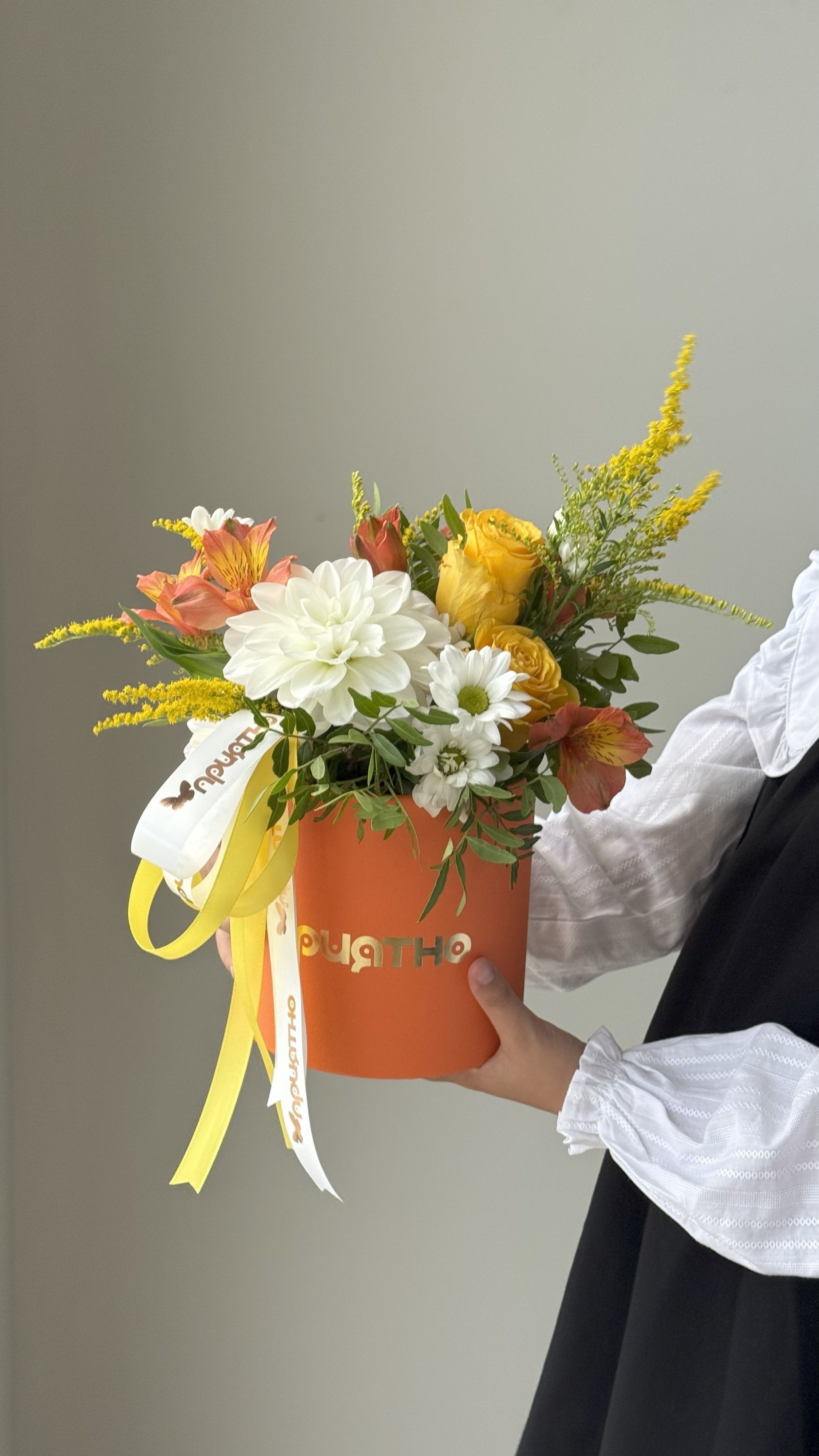 «Рыжий Шёпот Осени»: Цветочная Композиция в Шляпной Коробке