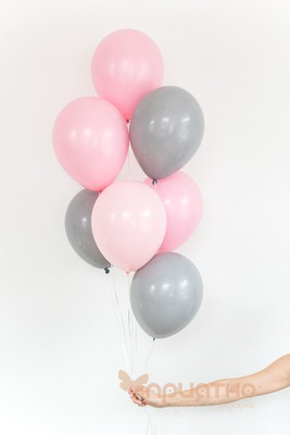 - Воздушные шары с гелием 10 шт. (3 шт серых, 4 шт. розовых, 3 шт. нежно розовых)