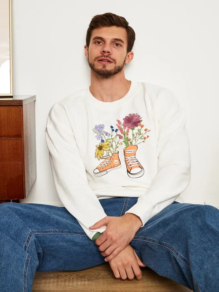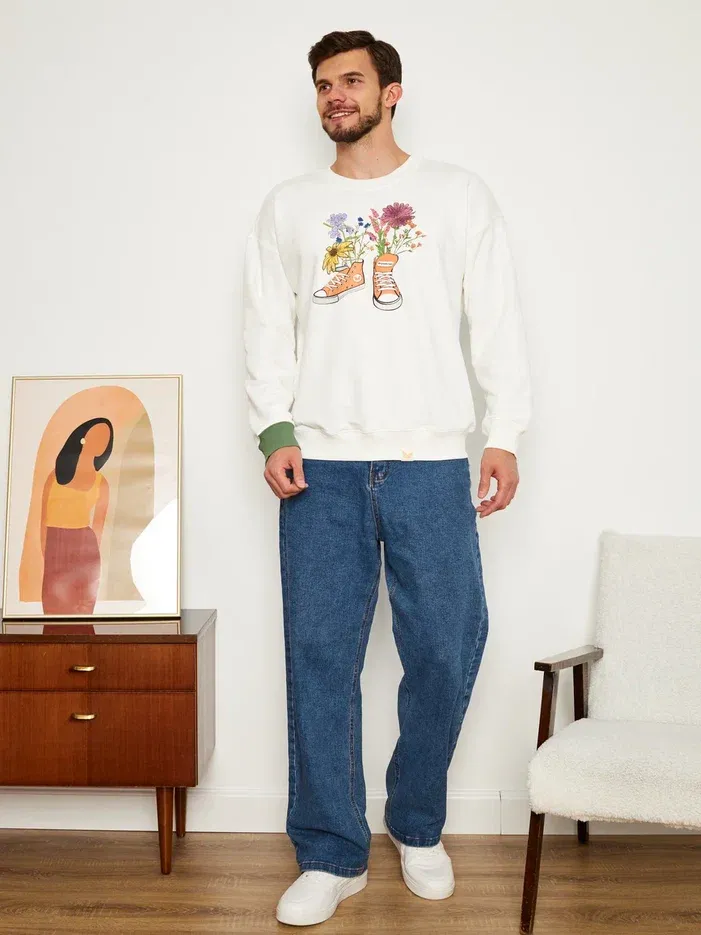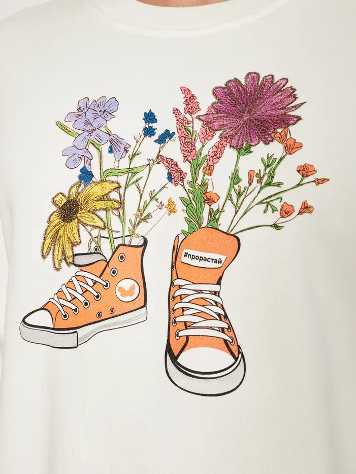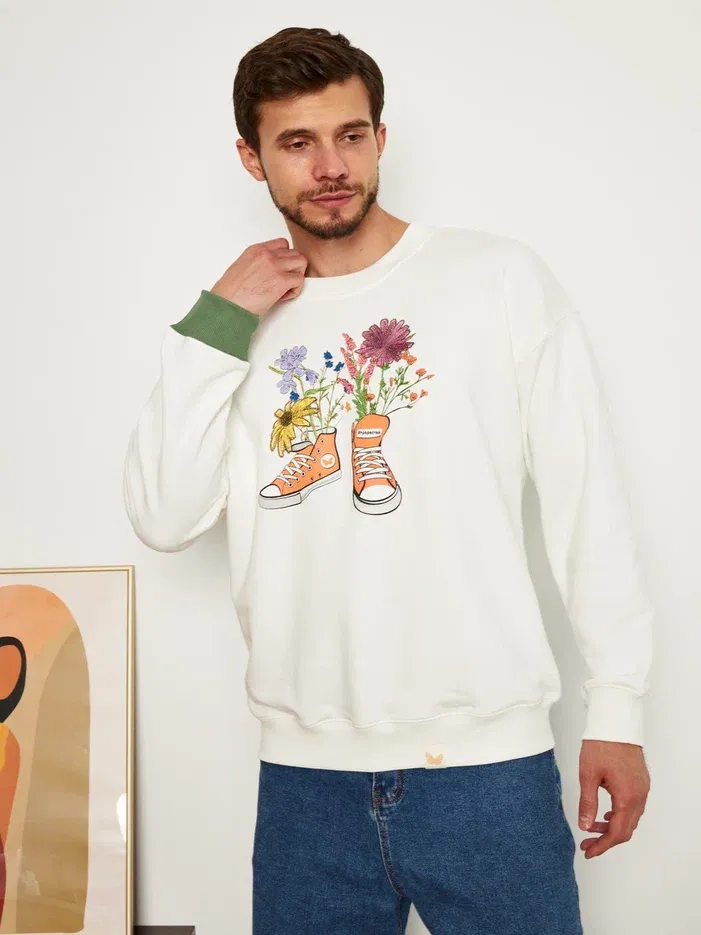 МУЖСКОЙ СВИТШОТ БЕЛЫЙ "ЦВЕТОЧНЫЕ КЕДЫ"