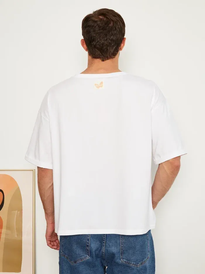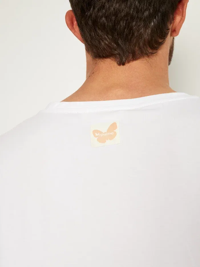 Цвет футболки - кипельно-белый.