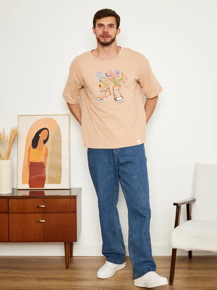 МУЖСКАЯ ФУТБОЛКА БЕЖЕВЫЙ "ЦВЕТОЧНЫЕ КЕДЫ"