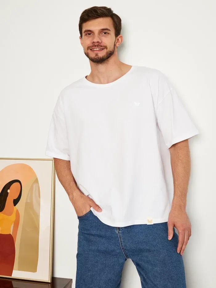 Цвет футболки - кипельно-белый.