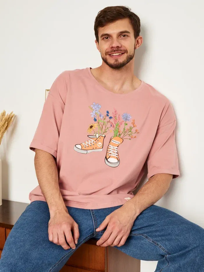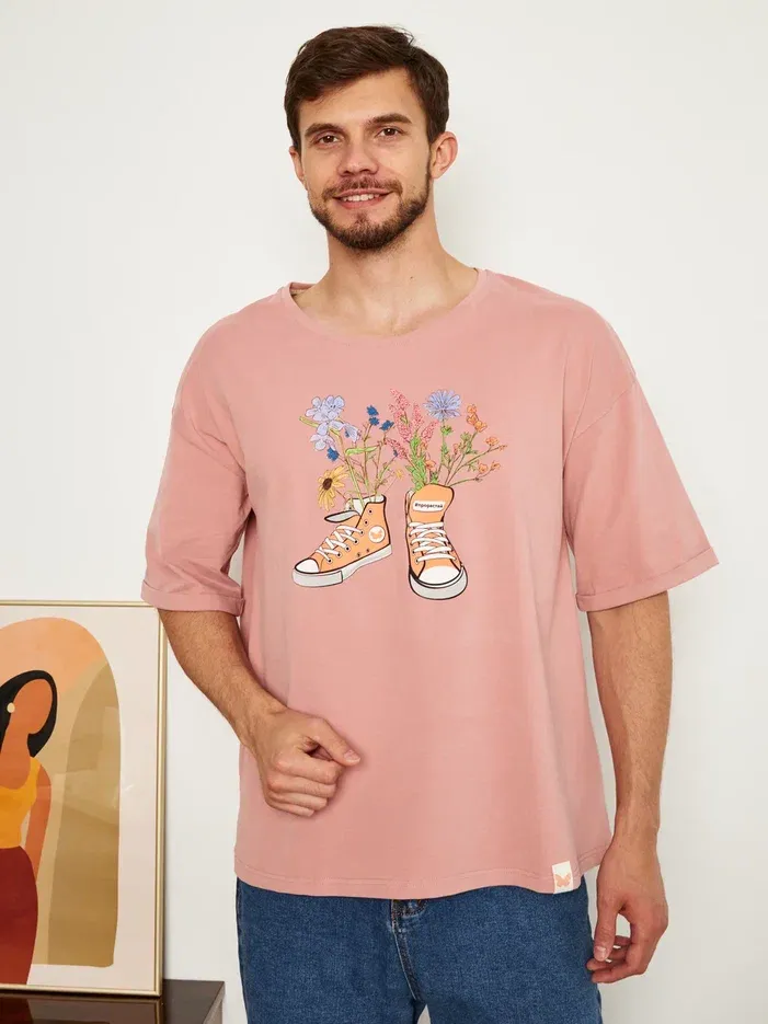 МУЖСКАЯ ФУТБОЛКА РОЗОВЫЙ "ЦВЕТОЧНЫЕ КЕДЫ"