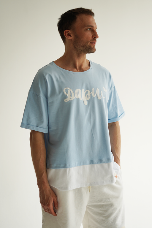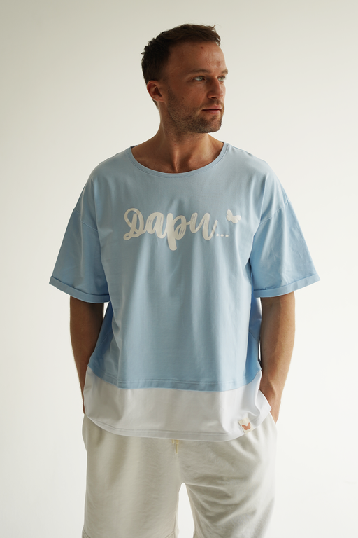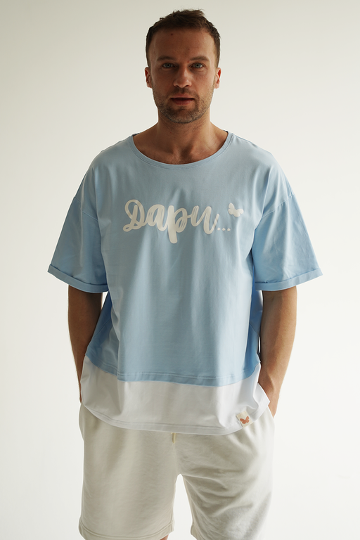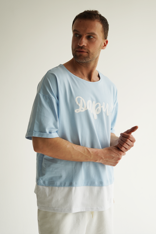 Стильный и комфортный мужской костюм голубого цвета, состоящий из футболки оверсайз и шорт. Этот универсальный комплект идеально подойдёт для повседневной носки и активного отдыха.