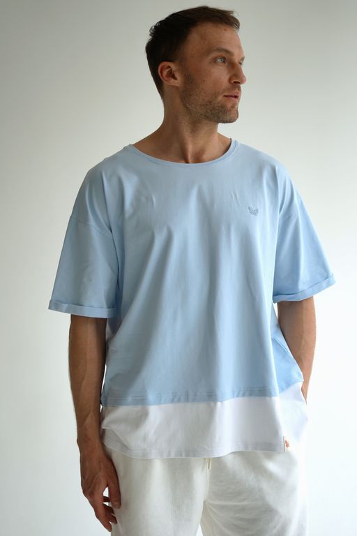Стильный и комфортный мужской костюм голубого цвета, состоящий из футболки оверсайз и шорт. Этот универсальный комплект идеально подойдёт для повседневной носки и активного отдыха.