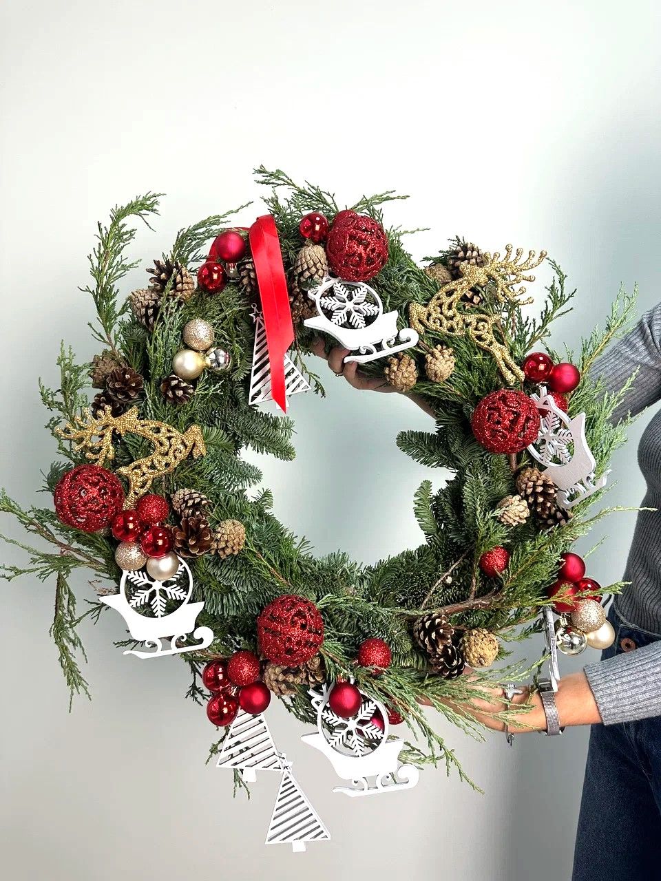 ТипНовогодние венкиСезон❄ ЗимаМини открытка в ПОДАРОКестьФотоотчёт - БЕСПЛАТНОестьОсновной цветокНобилисЦвет композицииКрасныйРазмерБольшаяДоставкаБЕСПЛАТНО (в рамках зон доставки и акции)ОсноваВенок