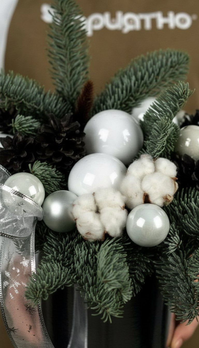 Ищете акцентное украшение, которое идеально впишется в современный интерьер? Наша компактная и невероятно стильная композиция «Изумрудный шёлк» создана для ценителей утончённого дизайна. Упакованная в красивое кашпо, она станет изысканным дополнением праздничного стола, каминной полки, рабочего кабинета или комода, даря ощущение свежести и стиля.