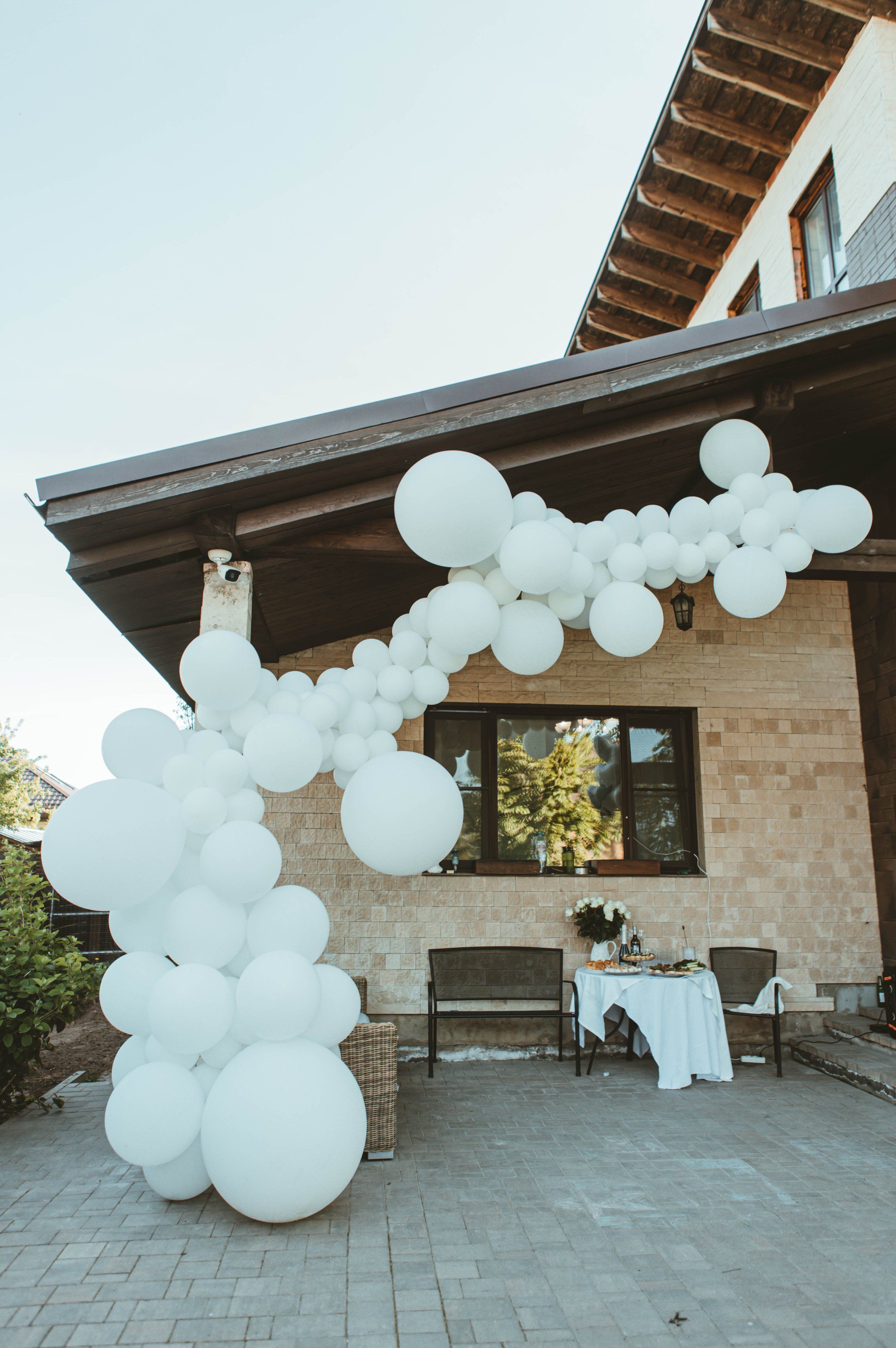 Гирлянда из шаров: Белоснежная, матовая и глянцевая, создающая объем и текстуру.