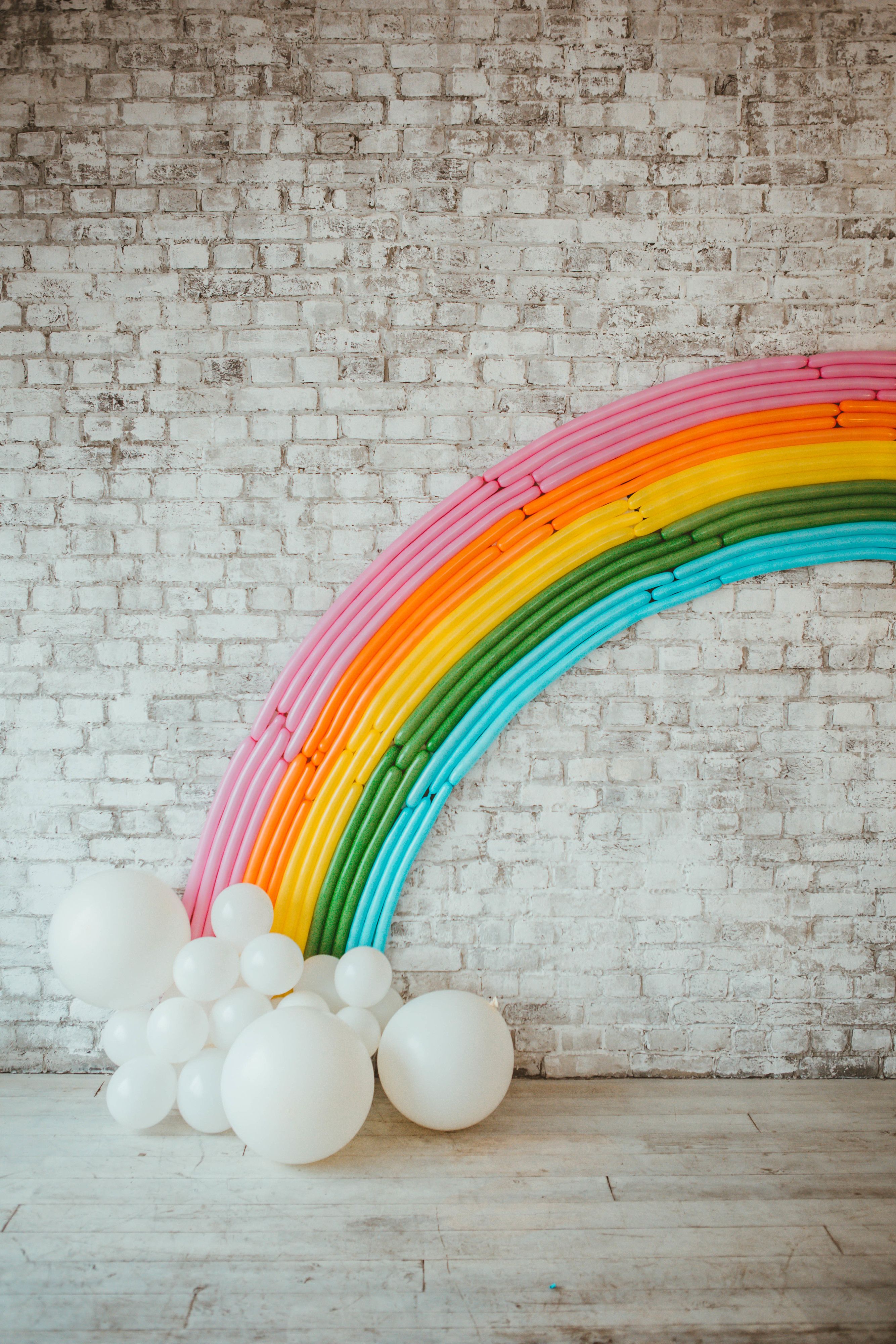 - Гирлянда из шаров в виде радуги с облаком — пушистое белое облако и все семь цветов радуги