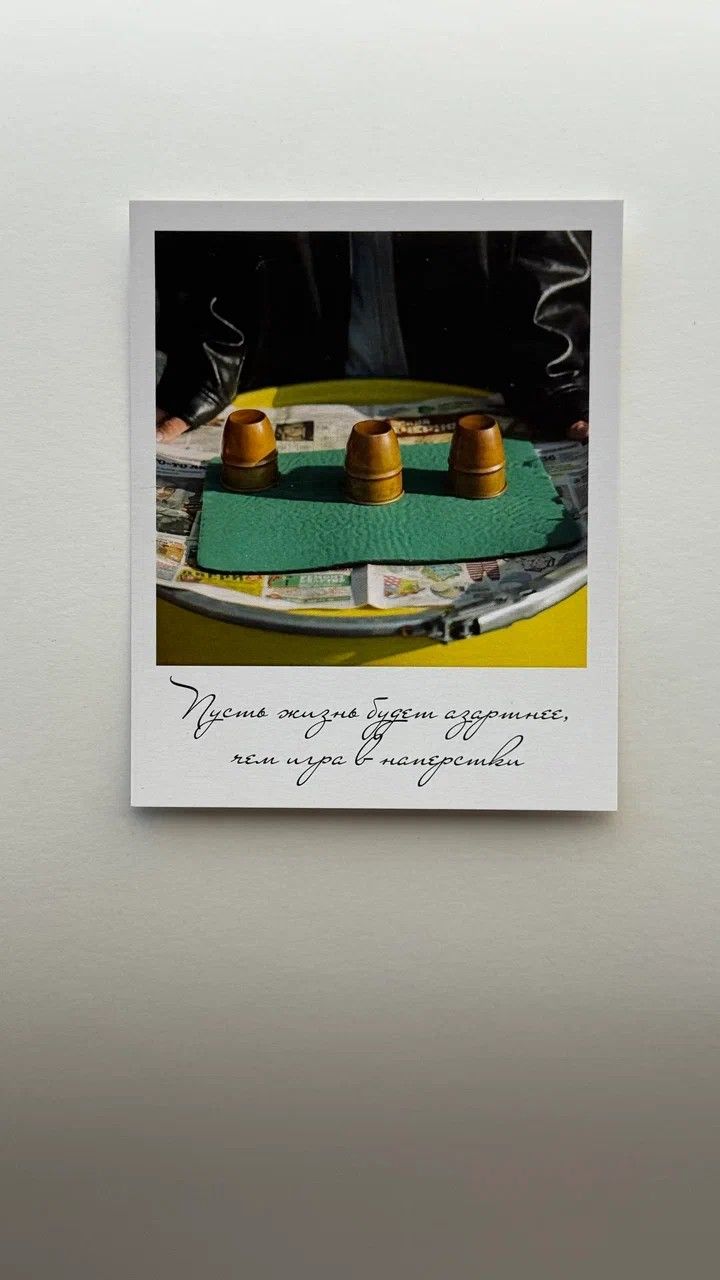 Открытка (полароид) "Пусть жизнь будет азартнее чем игра в напёрстки"