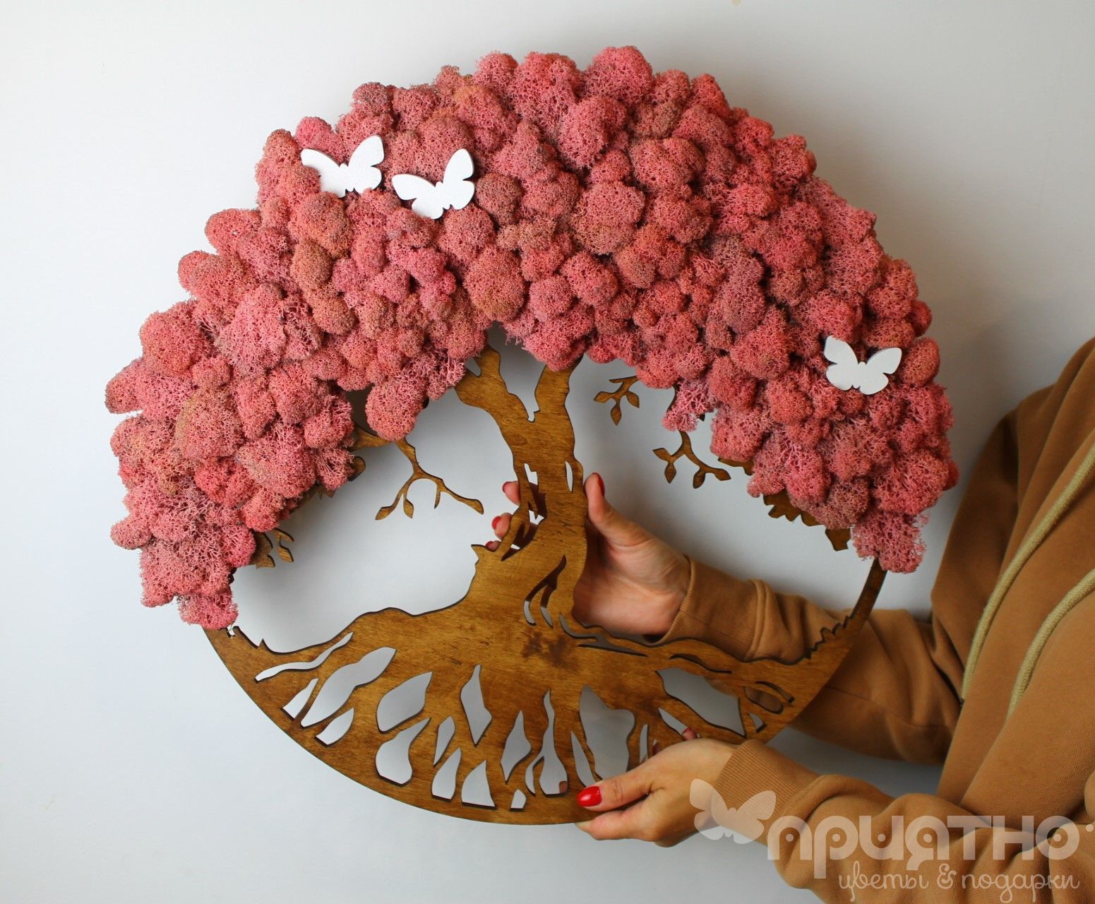Для создания таких картин используется стабилизированный мох, который не требует полива, удобрения или стрижки. Он сохраняет свою форму и цвет на протяжении многих лет, не утрачивая природной красоты.