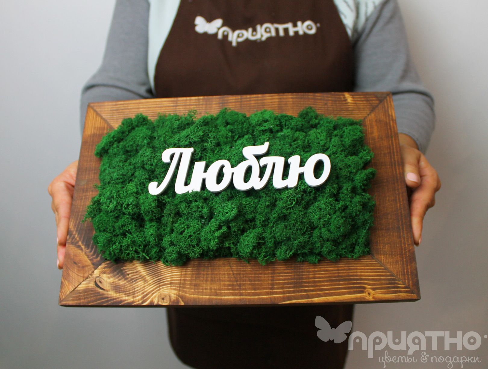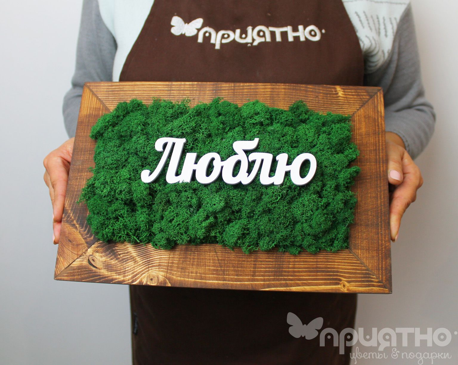 Стабилизированный мох, которым отделана внутренняя часть рамы, не нуждается в уходе и сохраняет свой внешний вид долгое время. Благодаря разнообразию оттенков мха, можно выбрать картину, которая будет хорошо смотреться в любом интерьере.