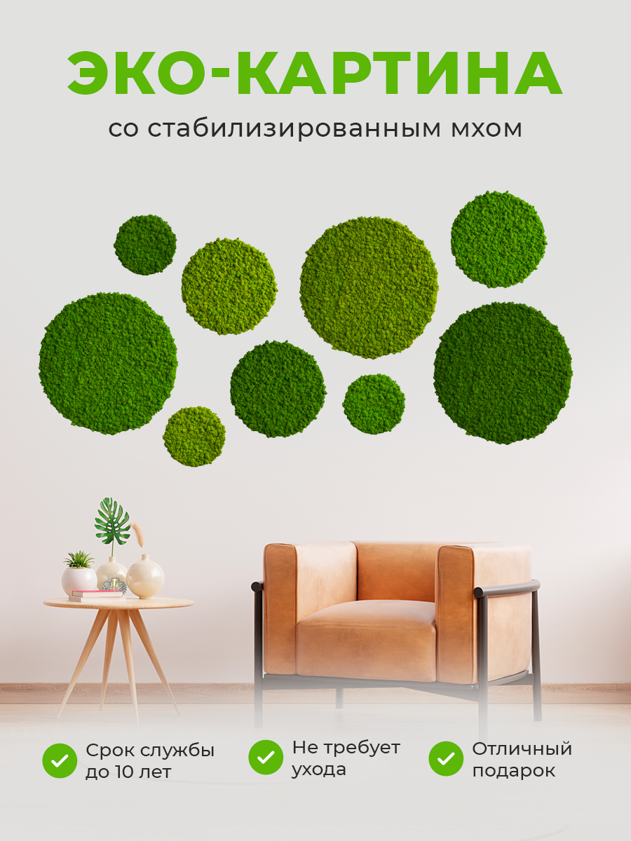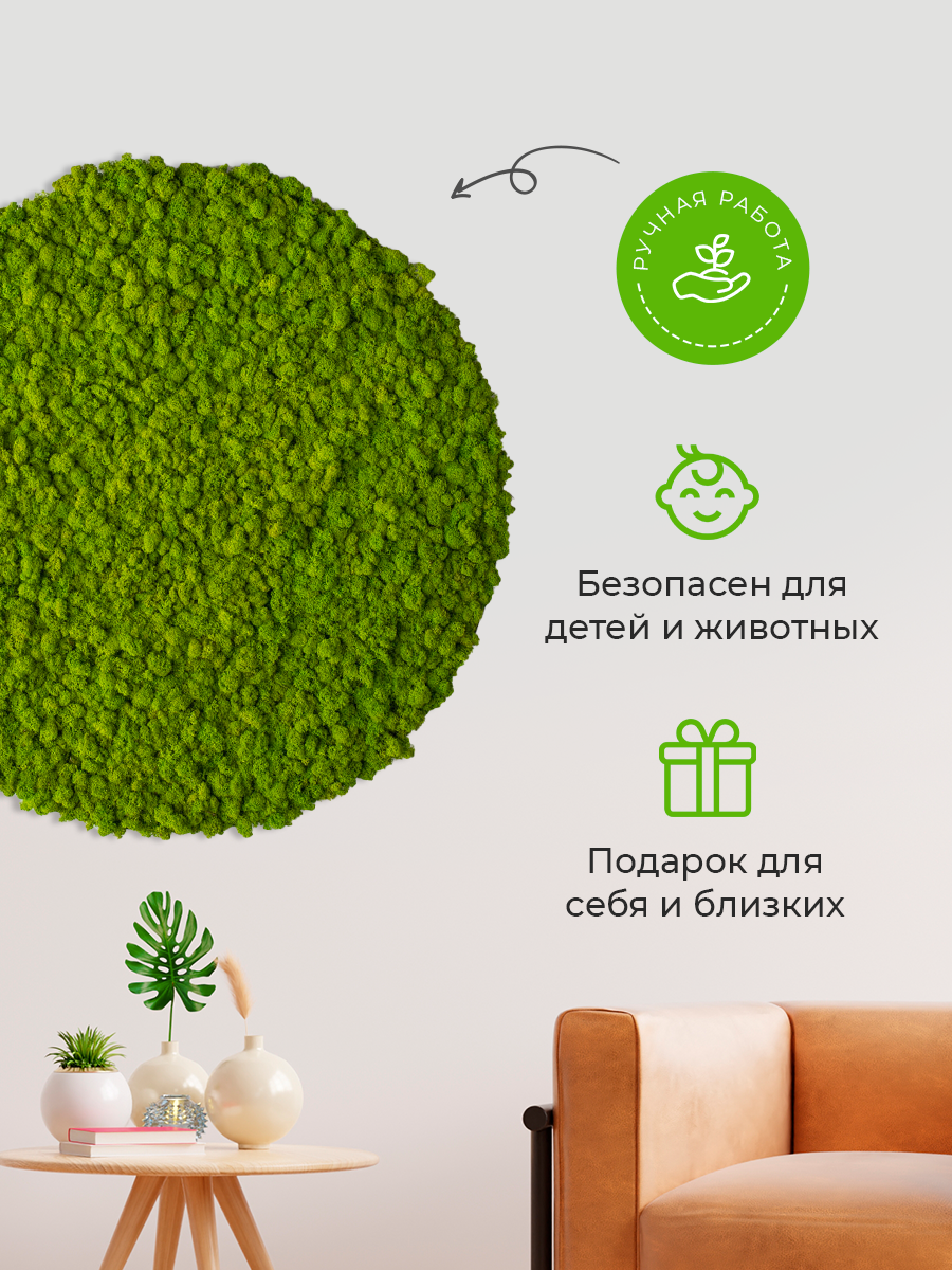 Подробности по уходу и комфортных условиях для размещения картин из мха, пожалуйста, уточняйте у администратора при оформлении заказа.
