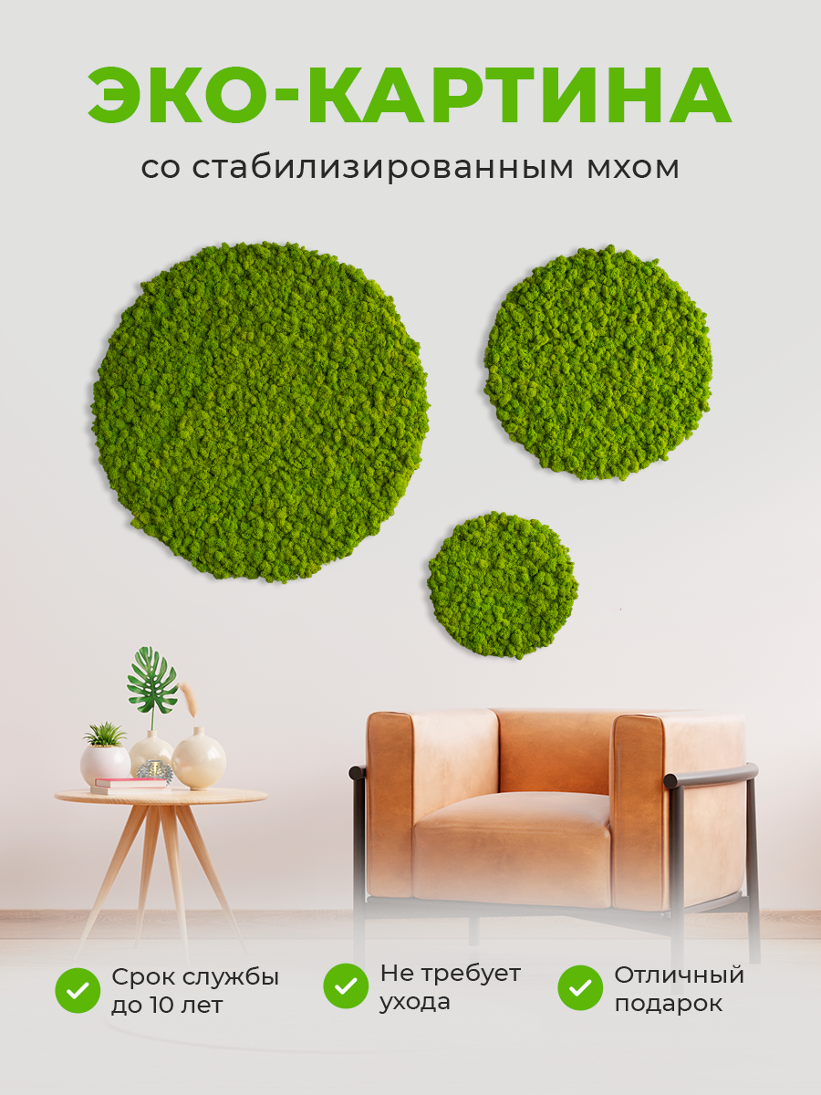 Подробности по уходу и комфортных условиях для размещения картин из мха, пожалуйста, уточняйте у администратора при оформлении заказа.