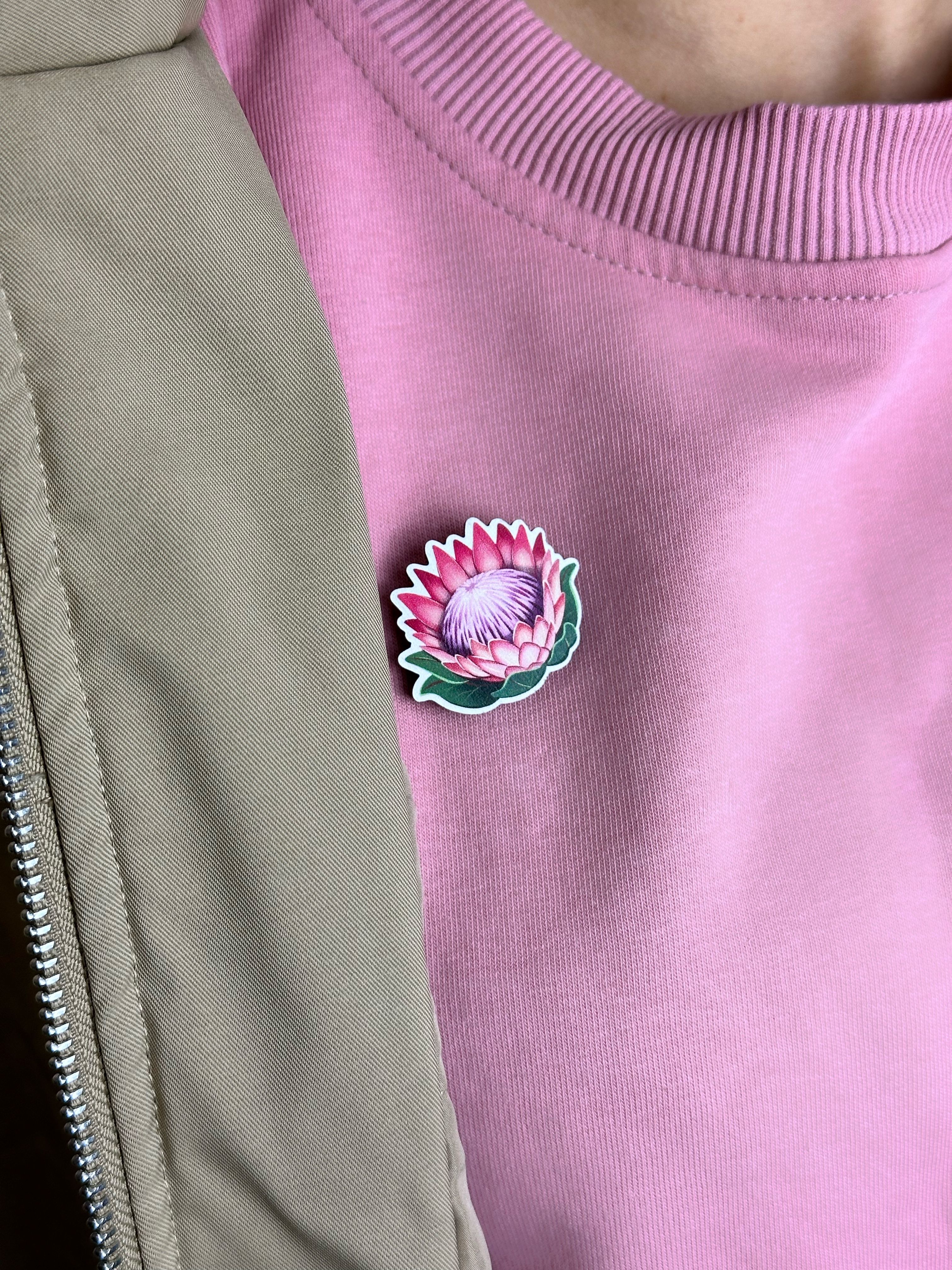 Считается, что протея раскрывает такие черты характера как щедрость, благородство, мужество и стойкость. Она также символизирует верность, честь и преданность. Значок с изображением протеи подходит для подарков людям, которые обладают этими качествами или хотят их в себе развить.