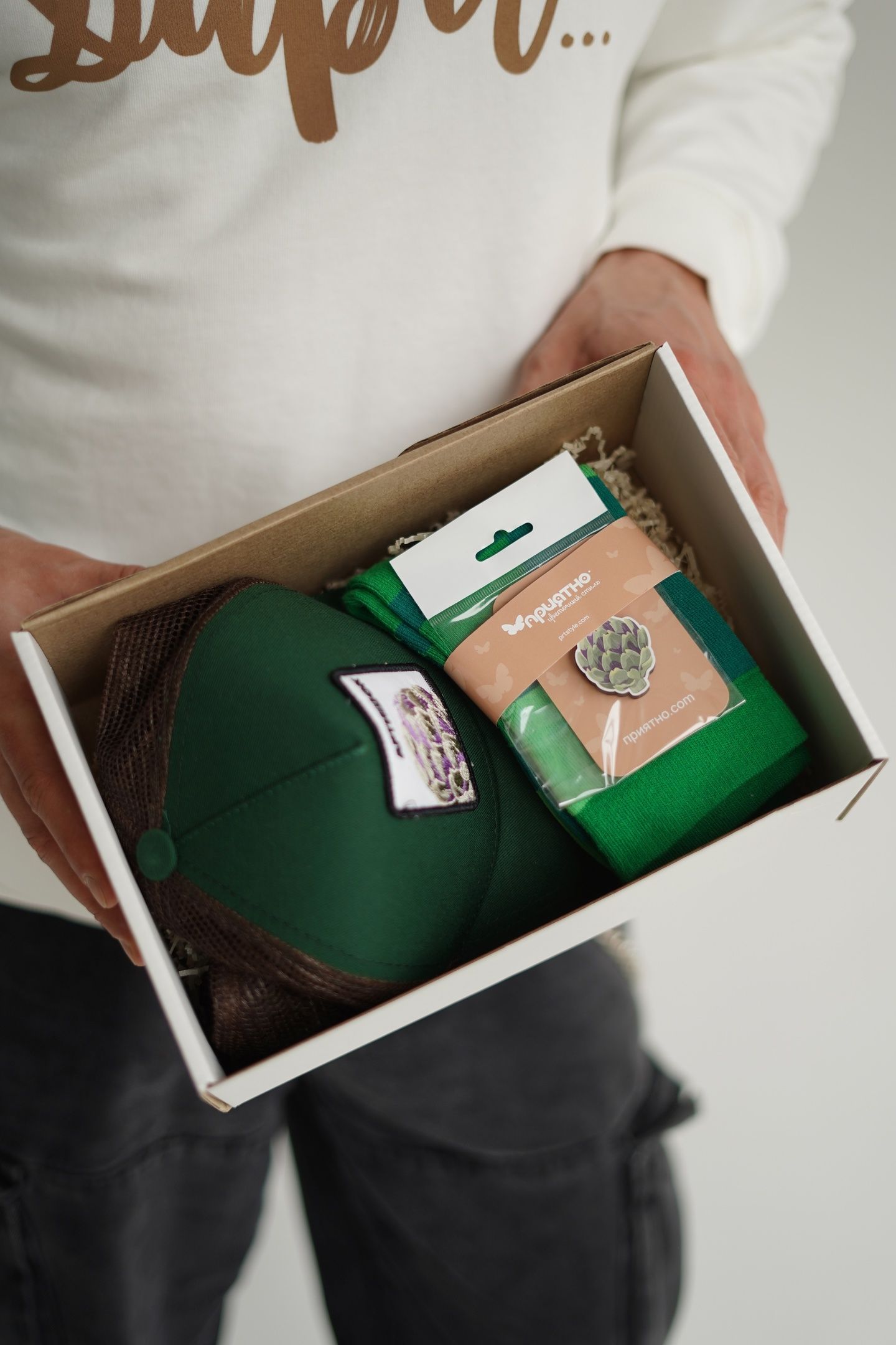 Наборы ДЛЯ НЕГО: эрингиум, нутан и артишок (на выбор). В набор входит стильная и удобная бейсболка, которая станет отличным дополнением к его образу. А еще значок с символом этих цветов, которые отражает мужественные черты характера! И, конечно же, носки с оригинальным рисунком, чтобы он чувствовал себя уютно и тепло, даже когда вас разделяет расстояние.