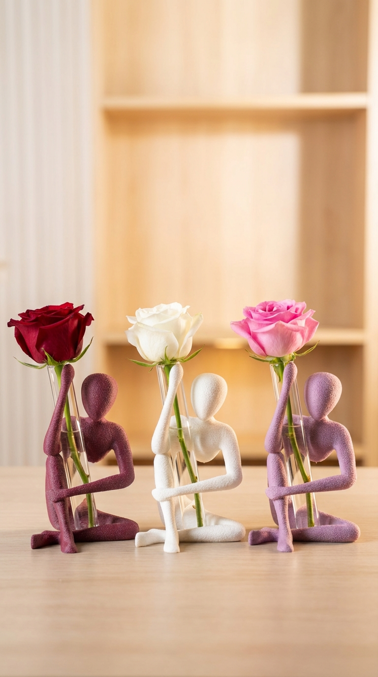 Некоторые подарки говорят без слов. Скульптура «Цветущая Нежность» изображает человека, который бережно держит стеклянную пробирку с цветком. Это метафора ваших чувств: не громкая декларация, а тихая, постоянная забота, которая становится основой для красоты.