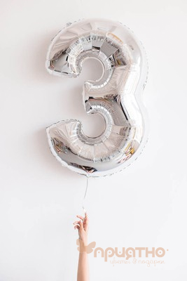Серебряная фольгированная цифра 3