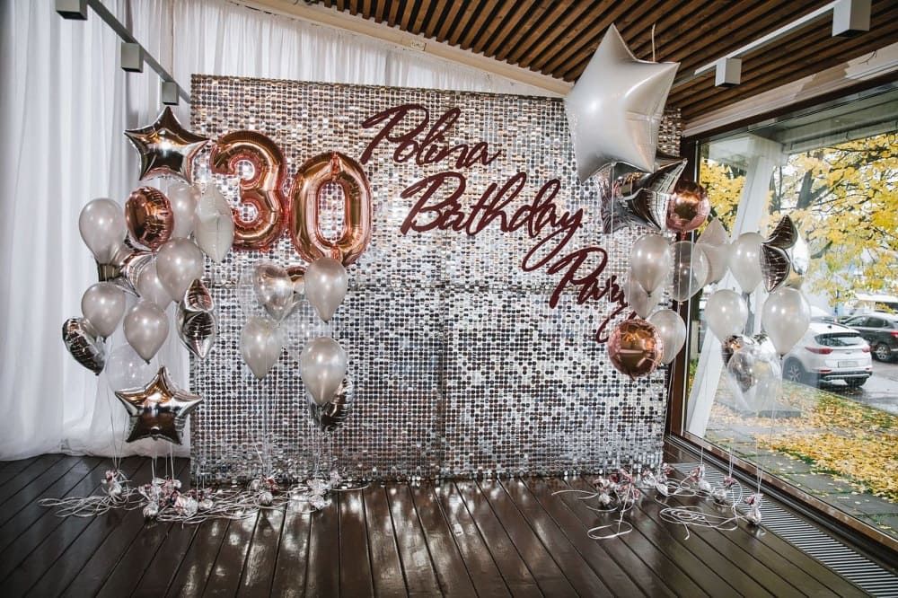 Создайте волшебную атмосферу для вашего праздника с этой элегантной фотозоной! Идеальное сочетание мерцающих пайеток, тематических шаров и декоративных звезд сделает ваше мероприятие по-настоящему незабываемым.
